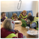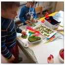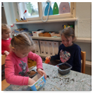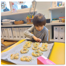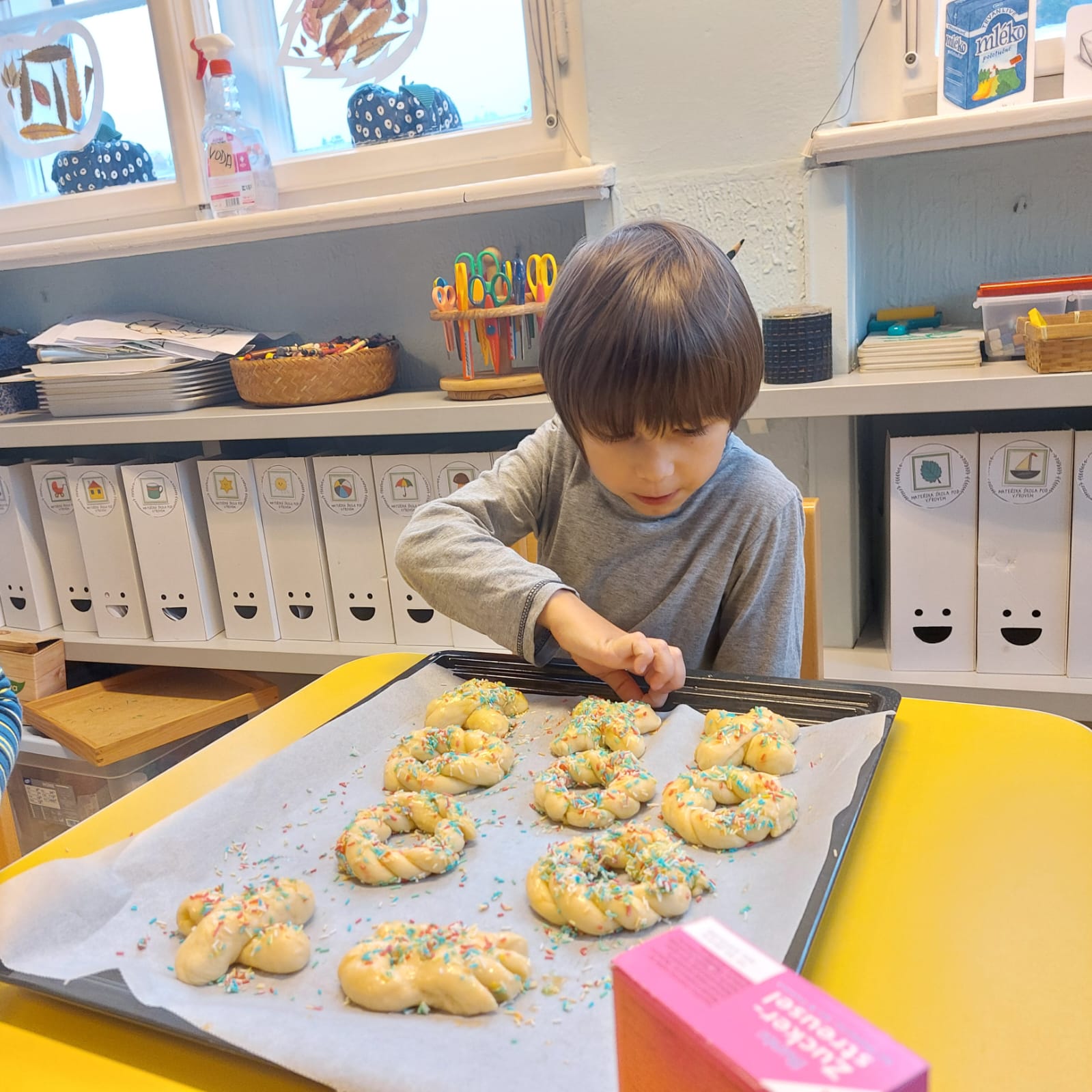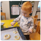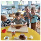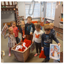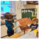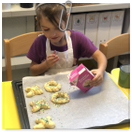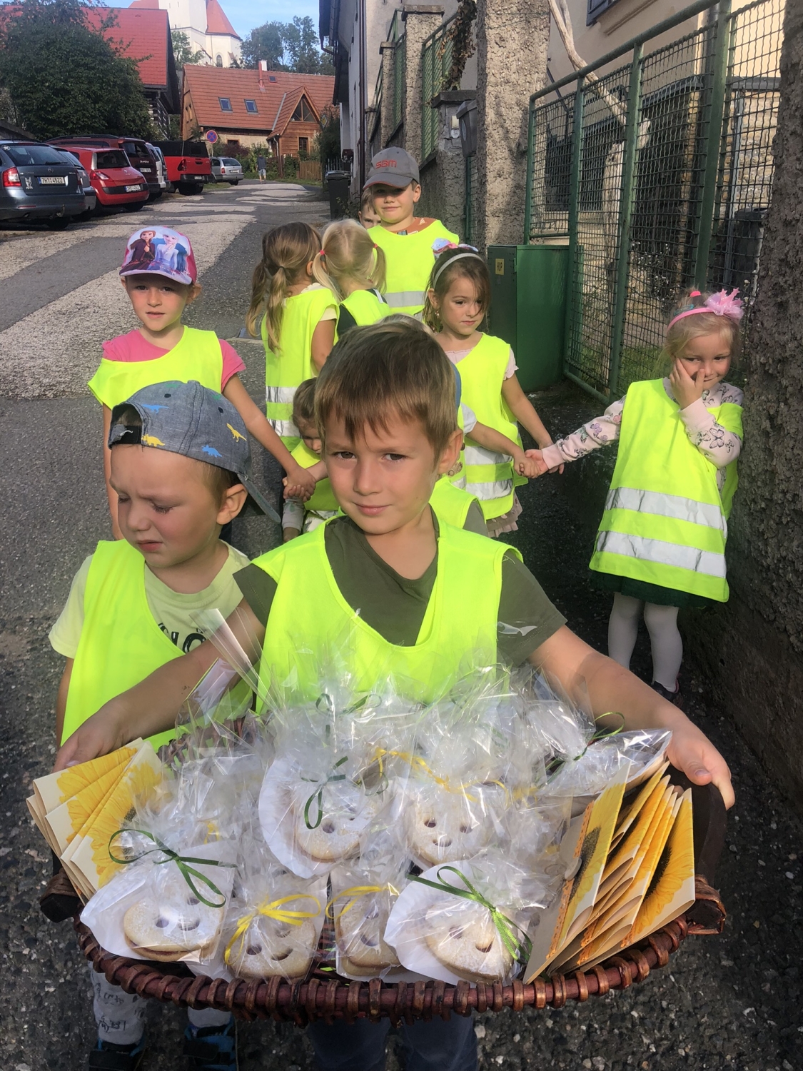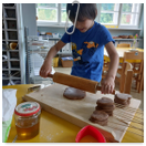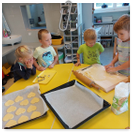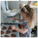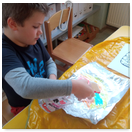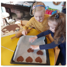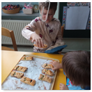 Pečeme, vyrábíme ke dni seniorů. Předání dárečků v nedalekém pečovatelském domě.