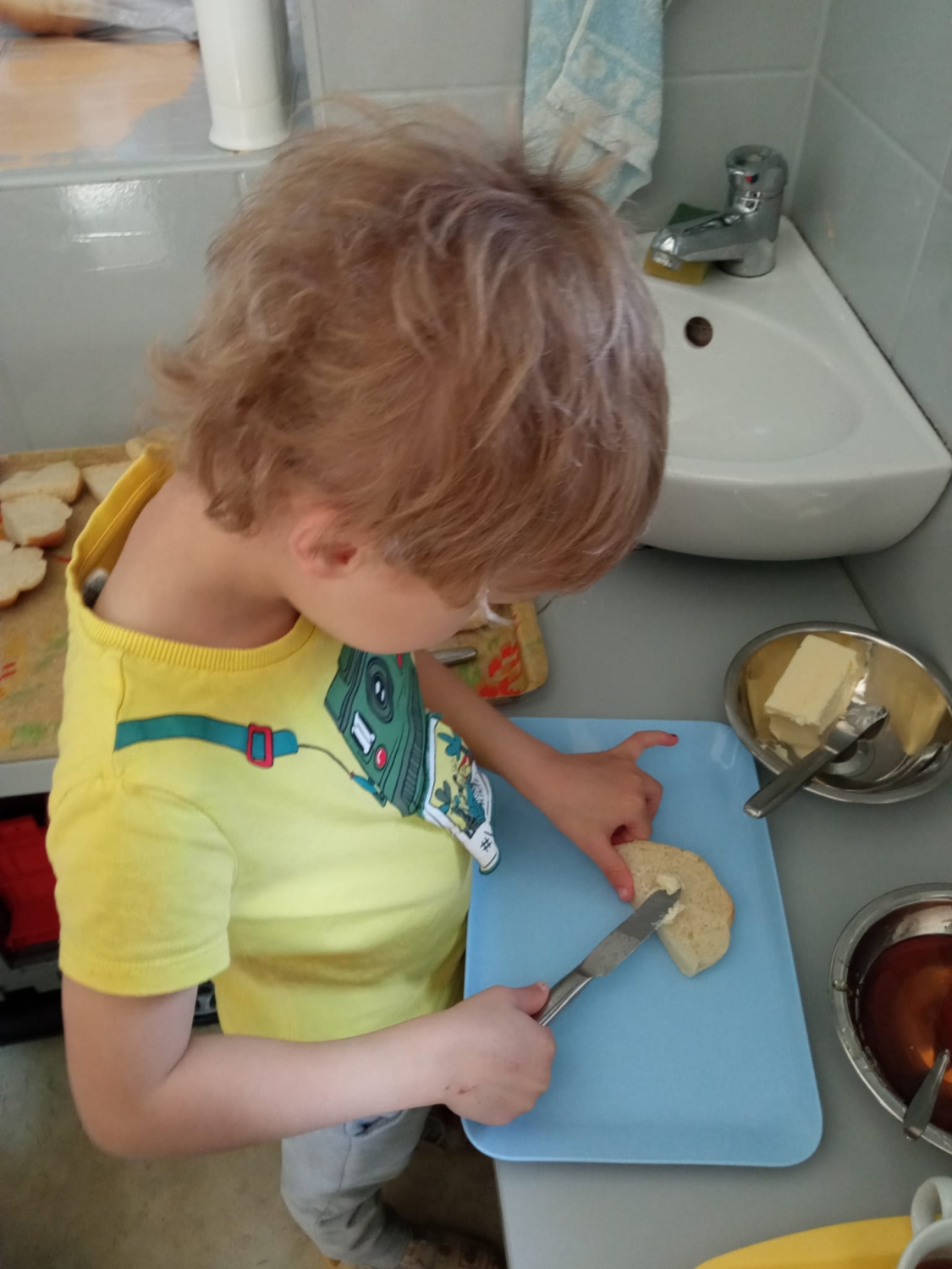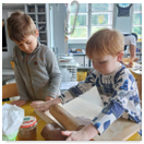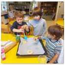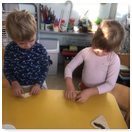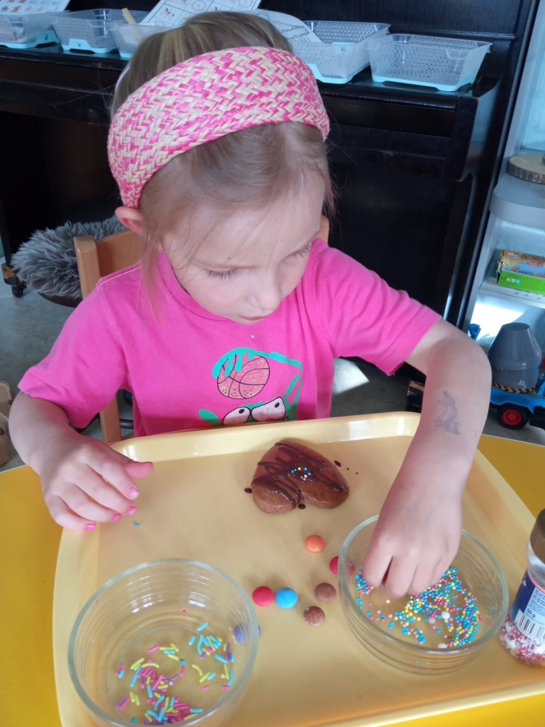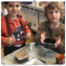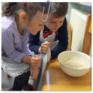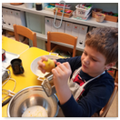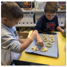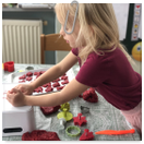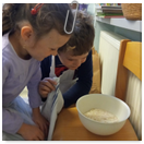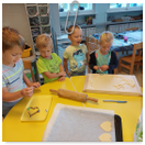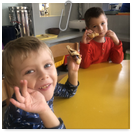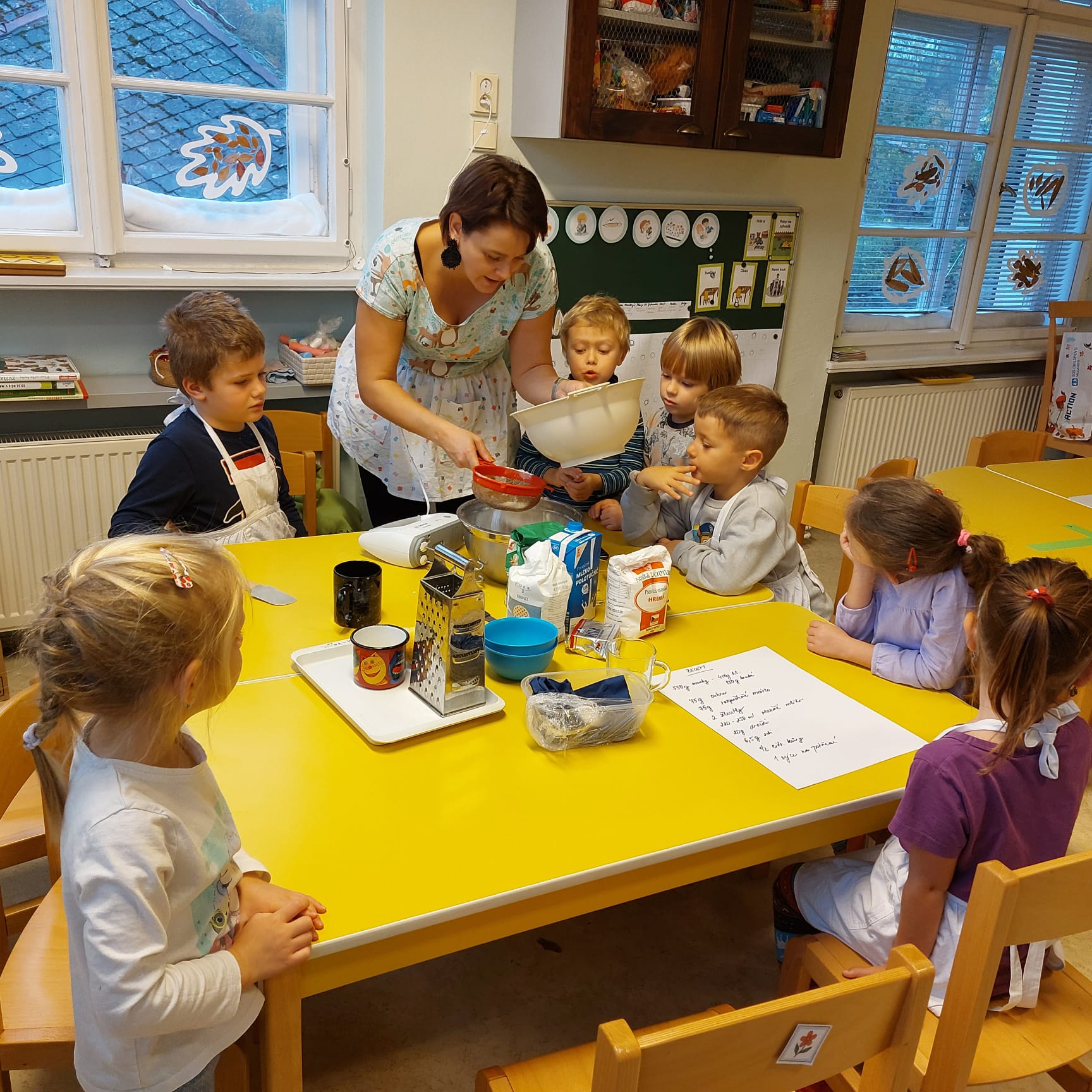 Pečeme, vyrábíme ke dni seniorů. Předání dárečků v nedalekém pečovatelském domě.