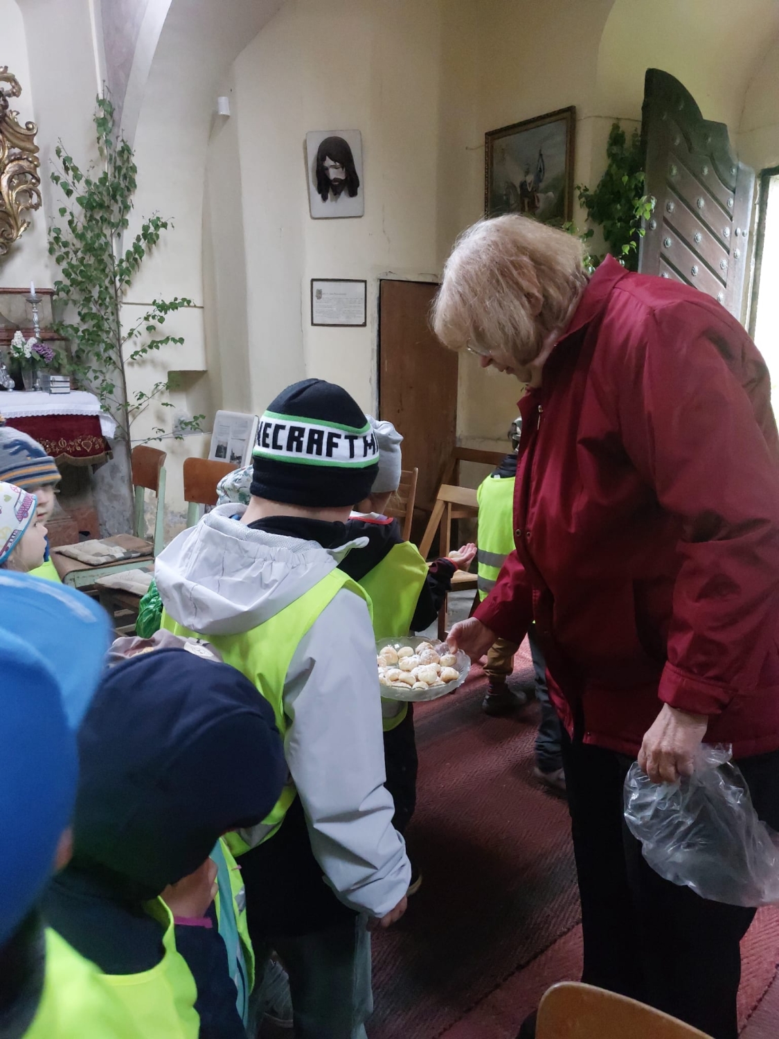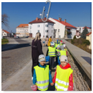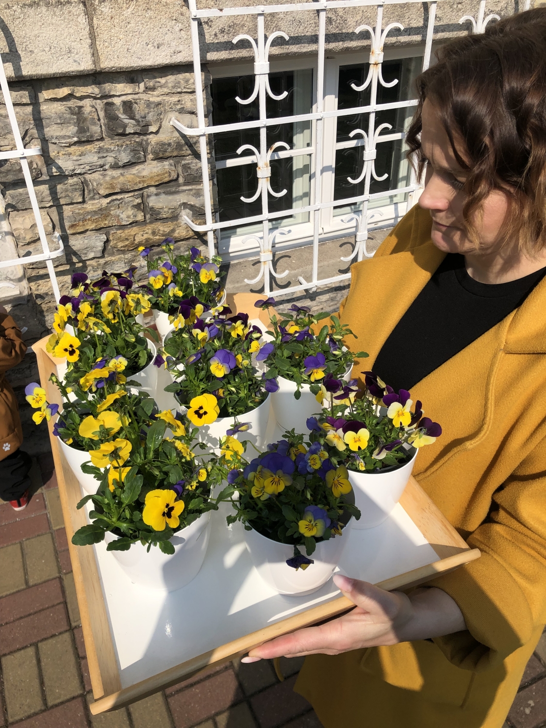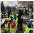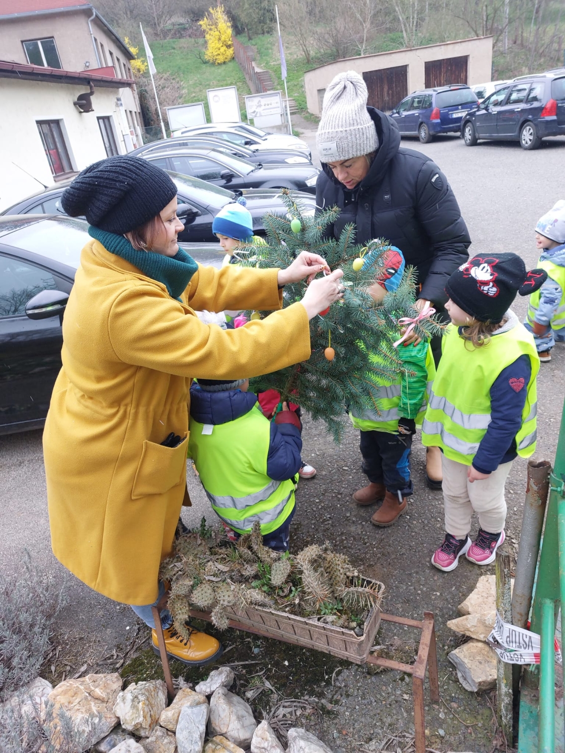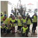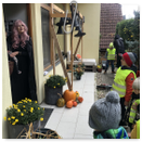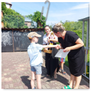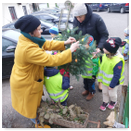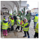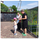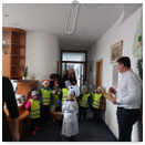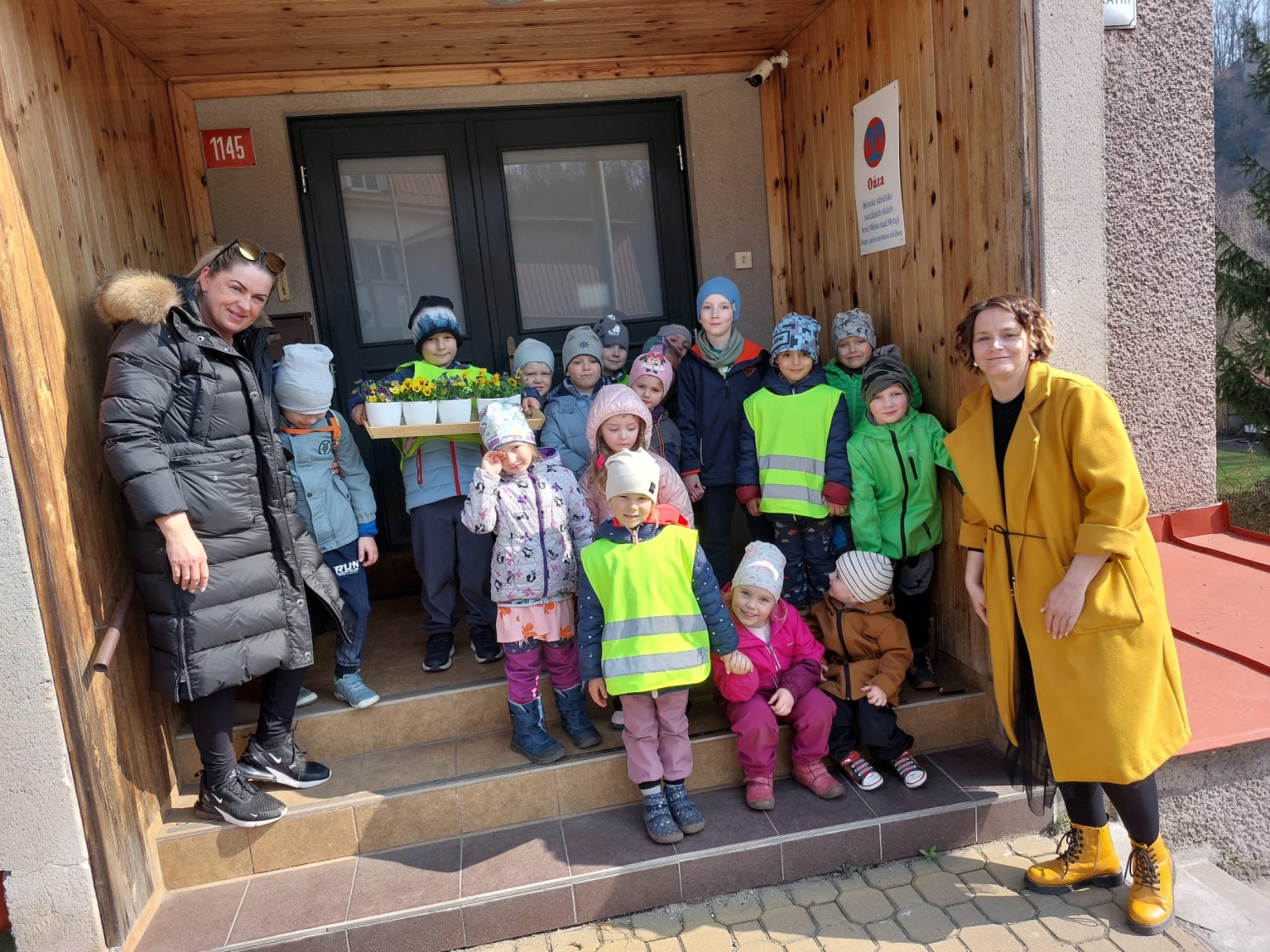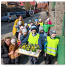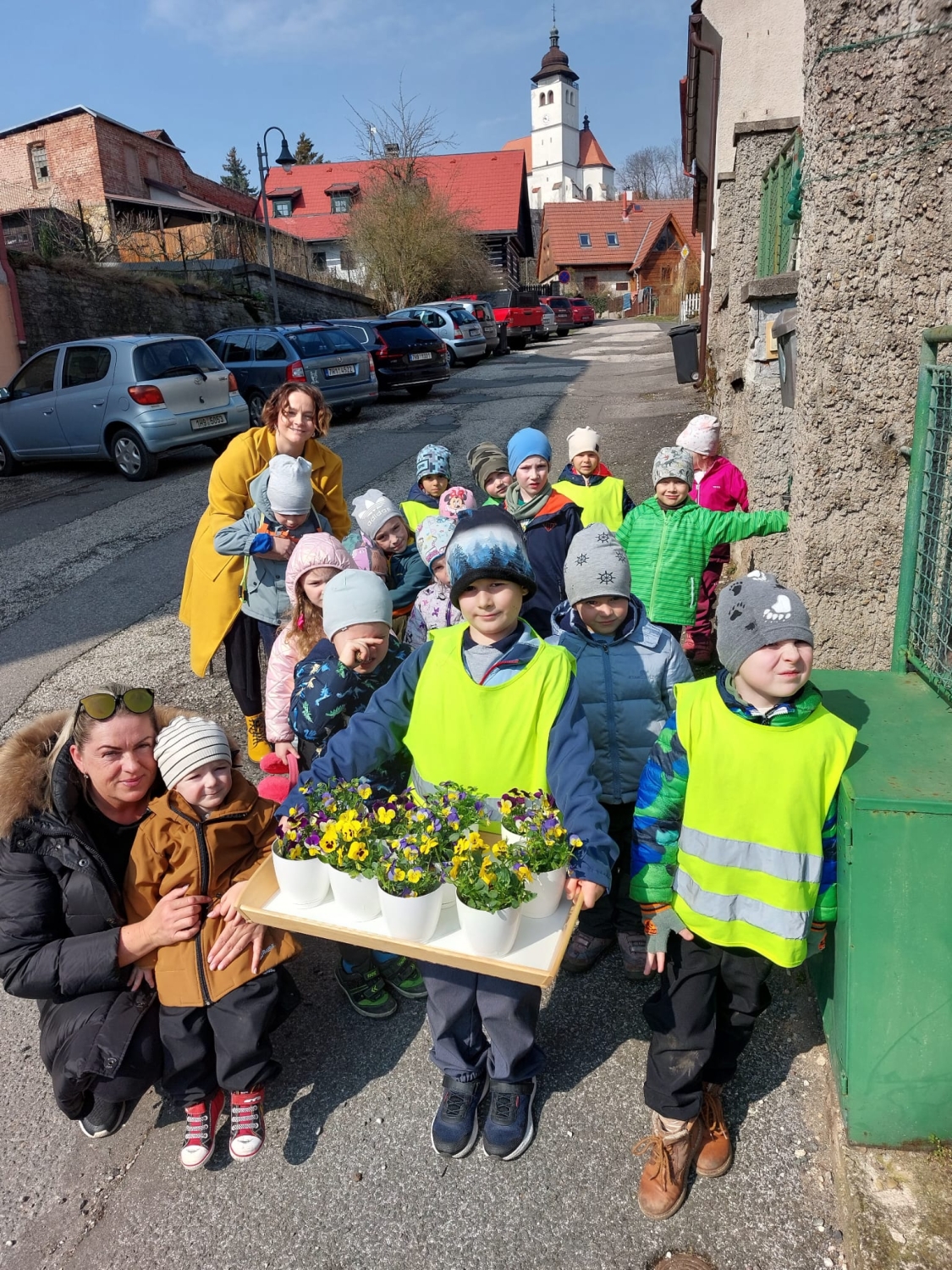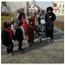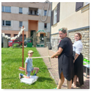 Předání kytiček do nedalekého pečovatelského domu