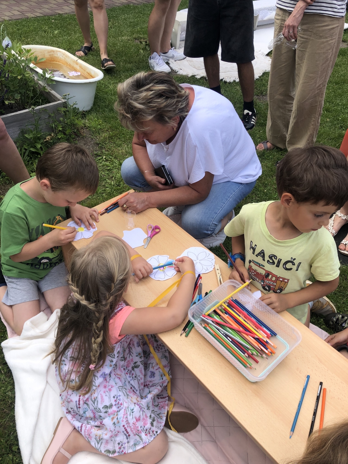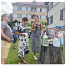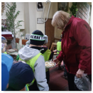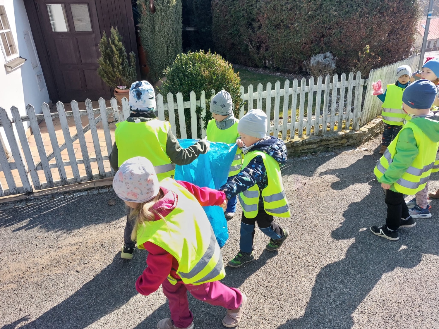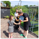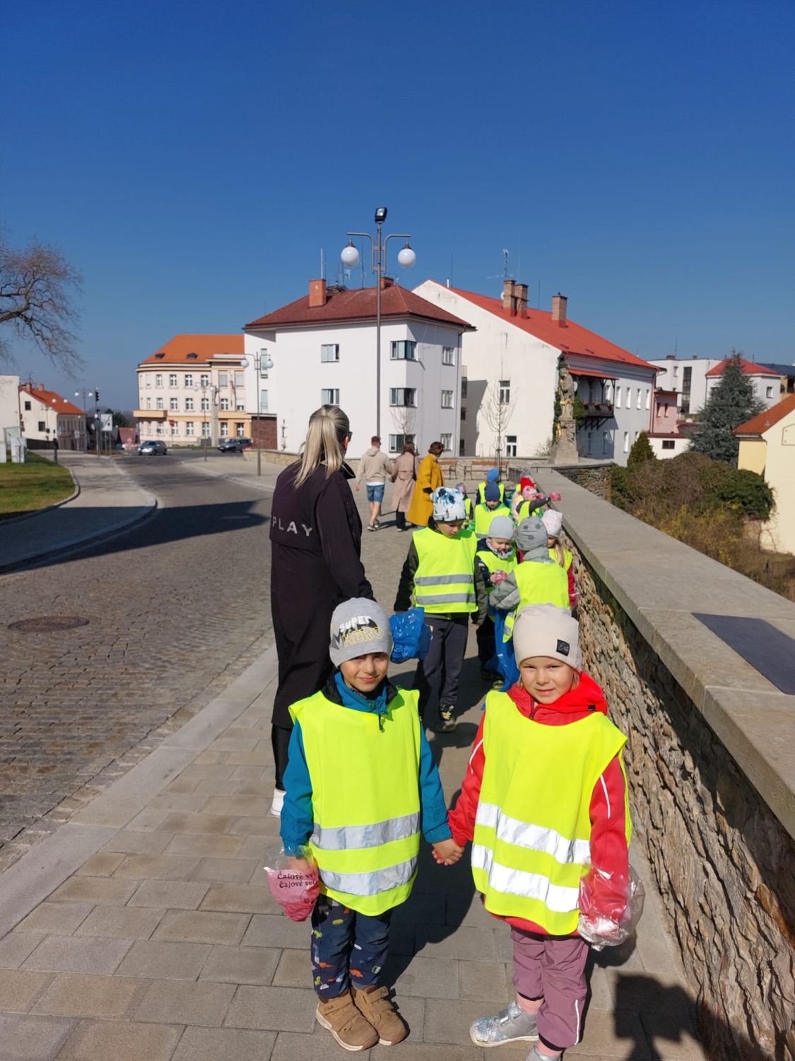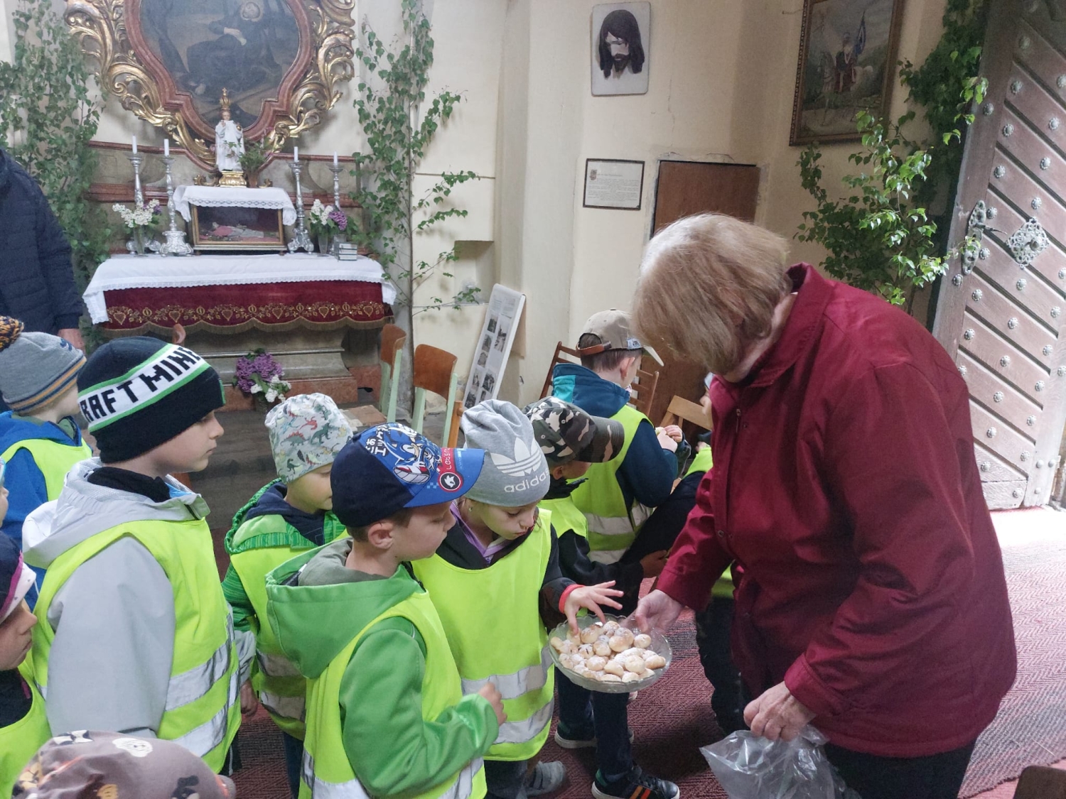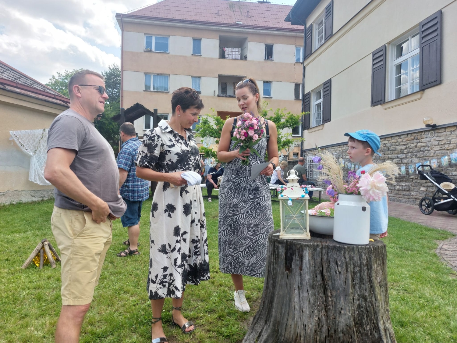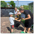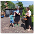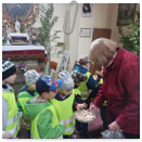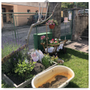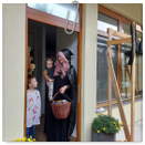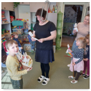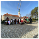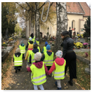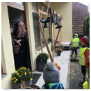 Předání kytiček do nedalekého pečovatelského domu