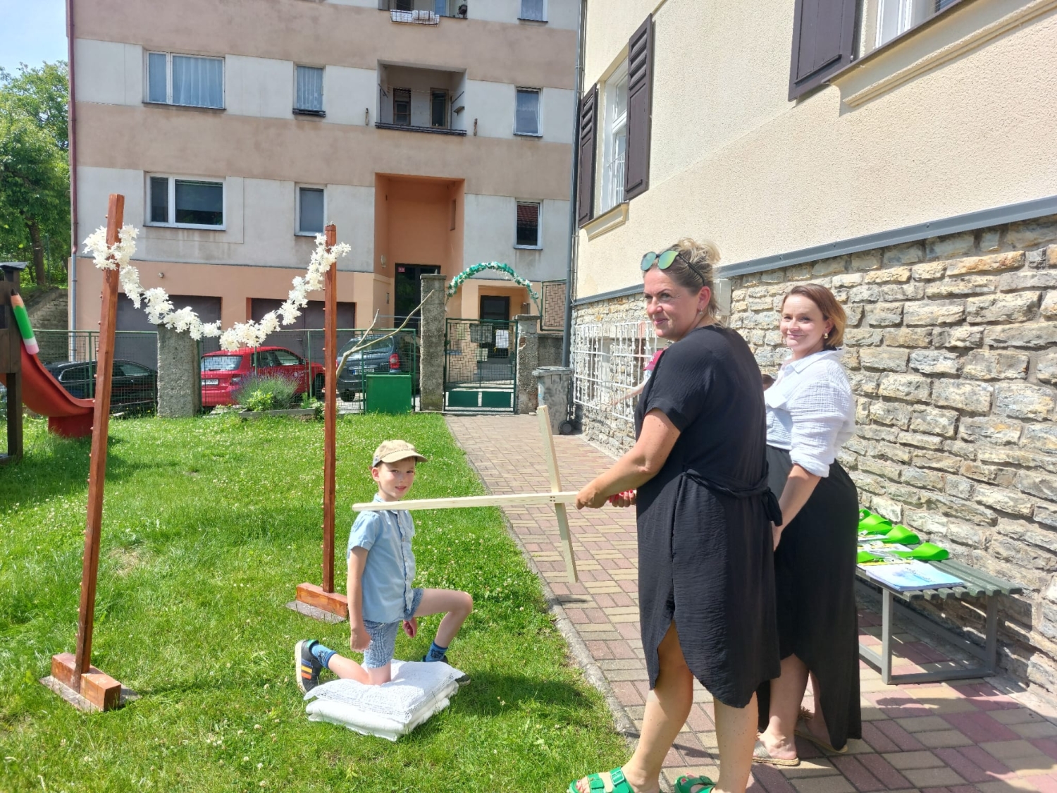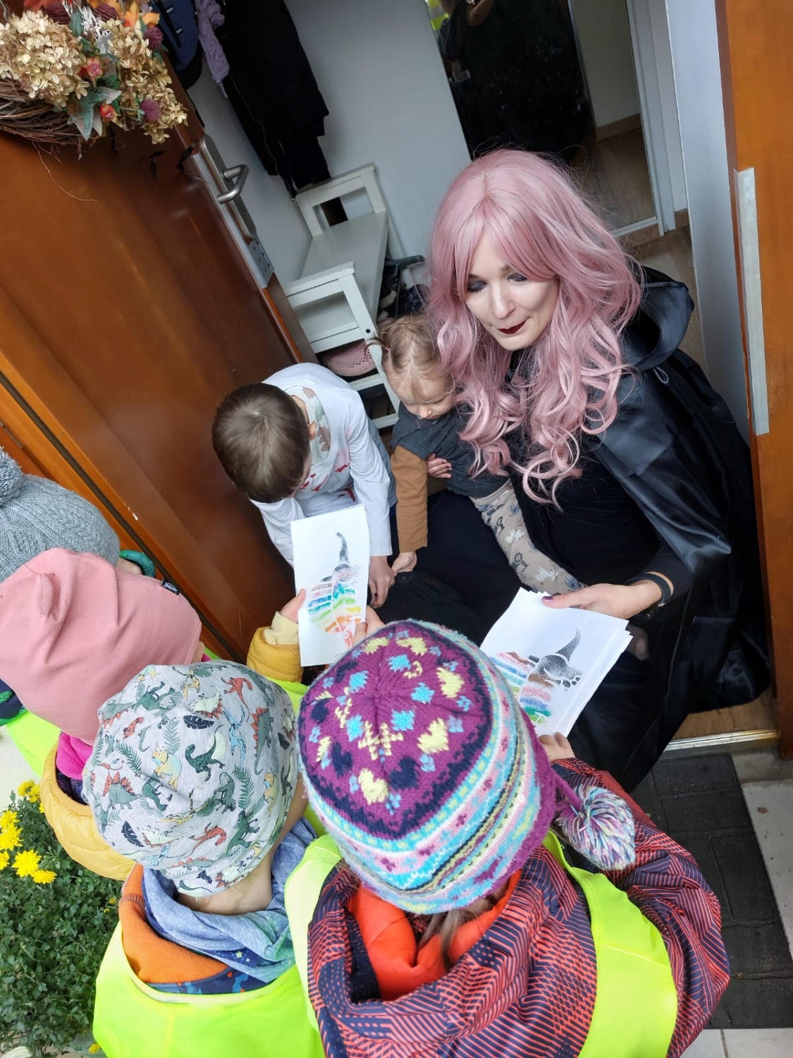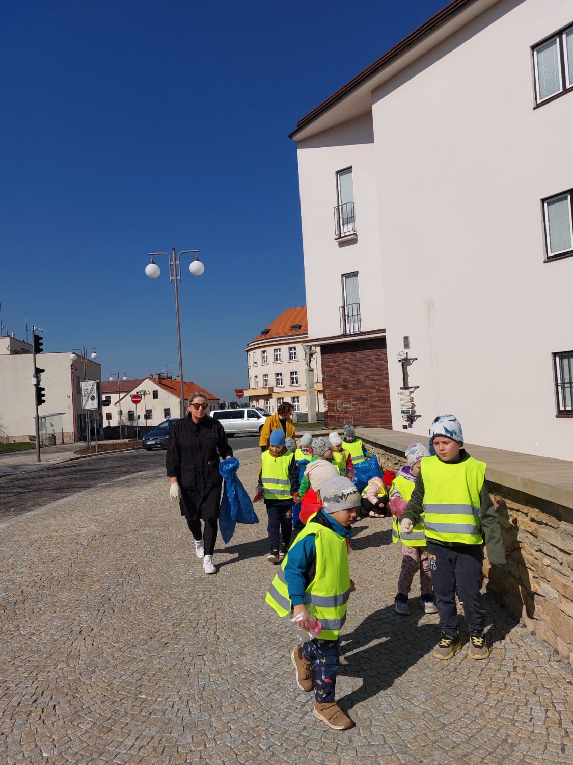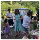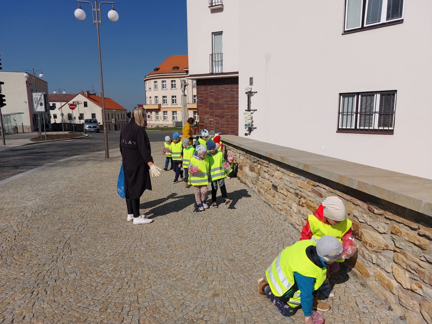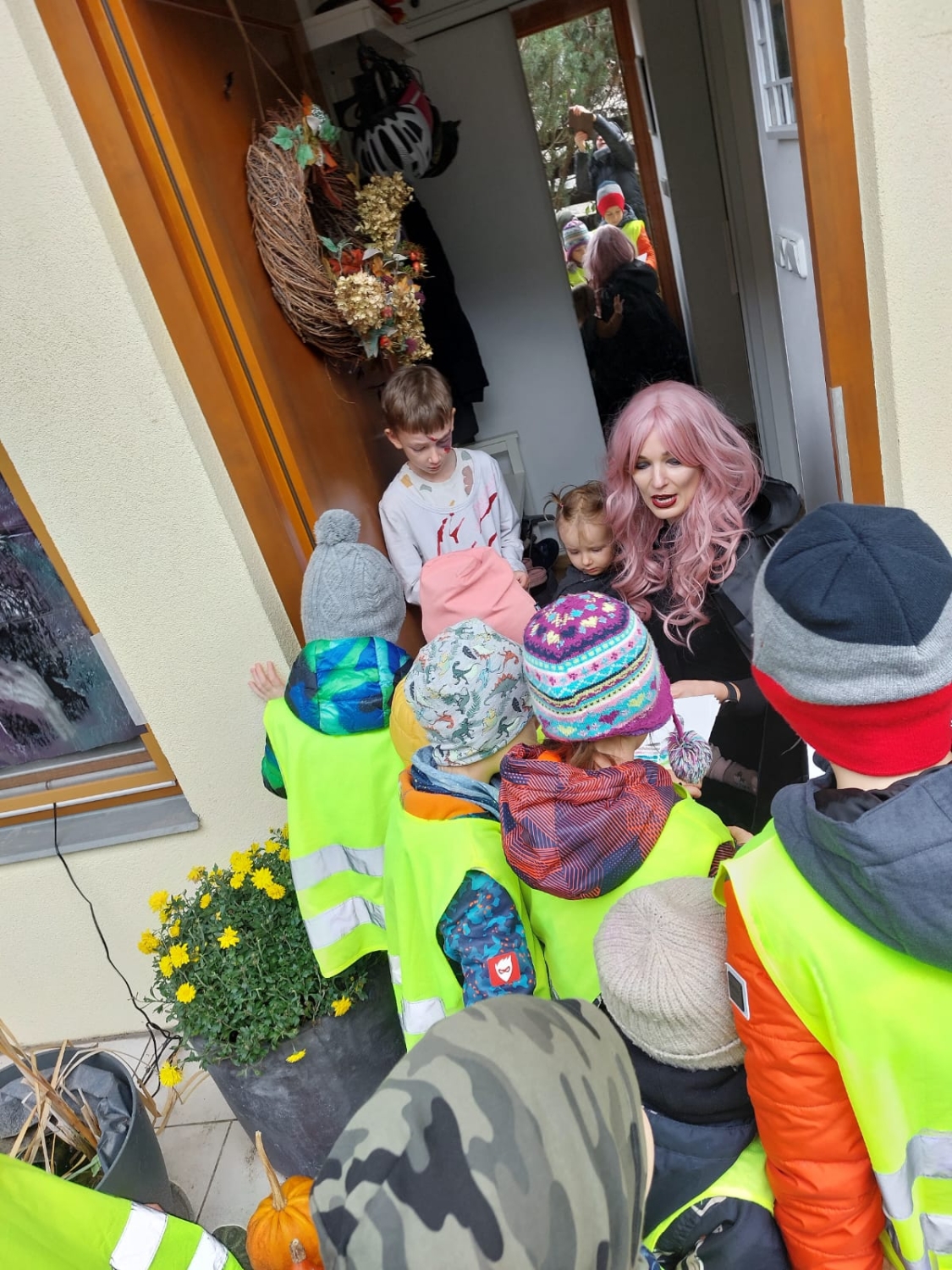 Předání kytiček do nedalekého pečovatelského domu