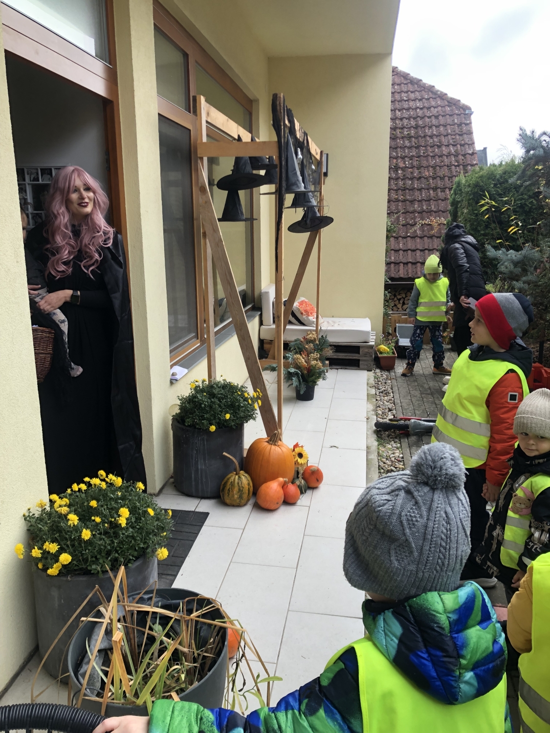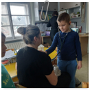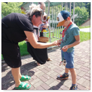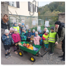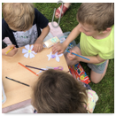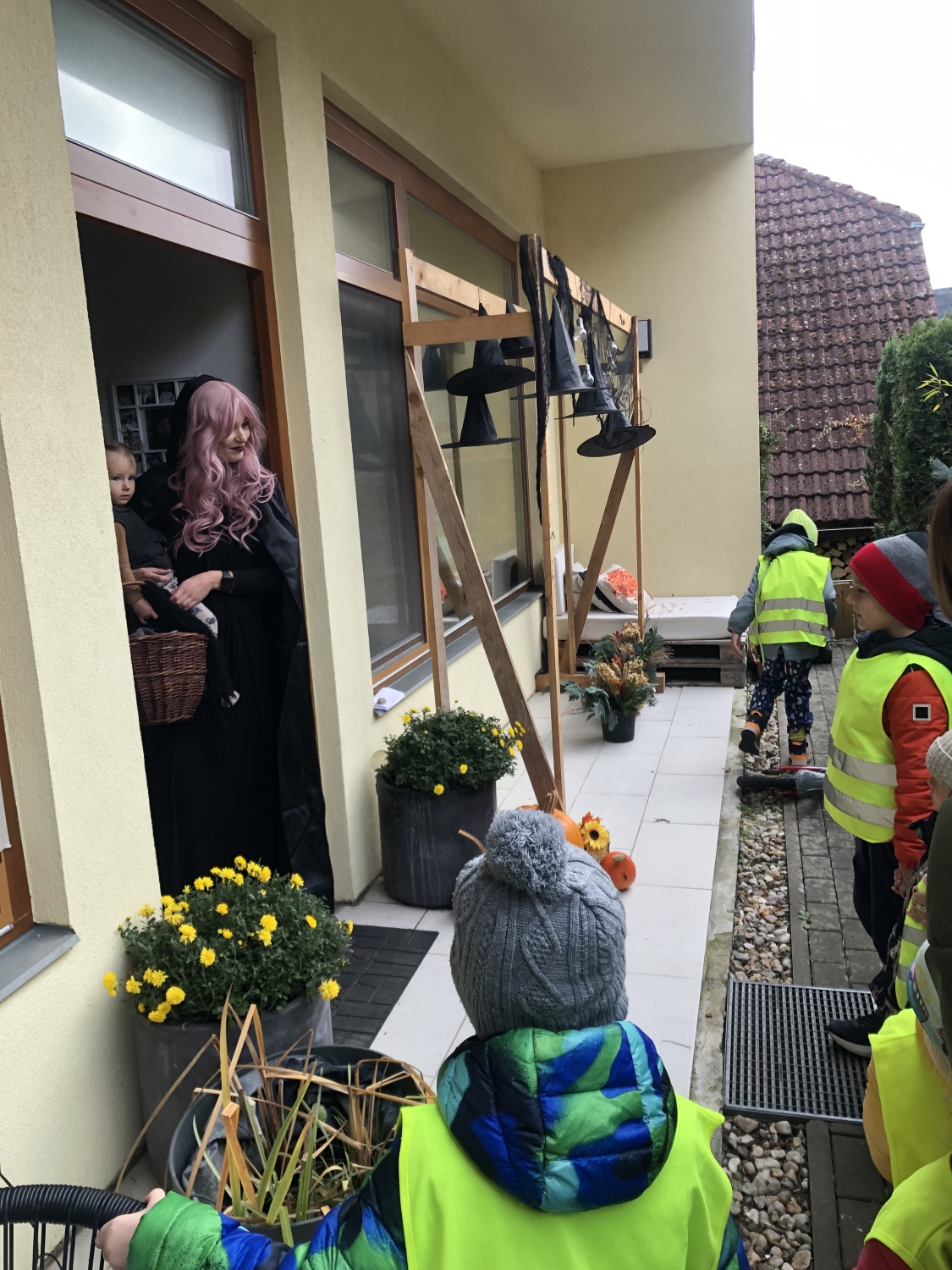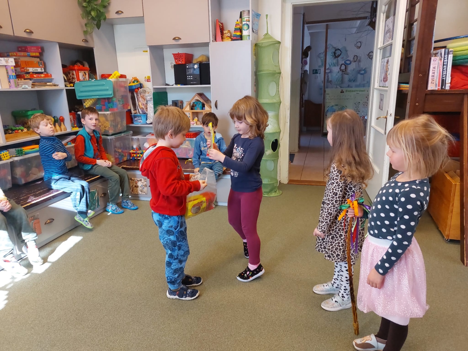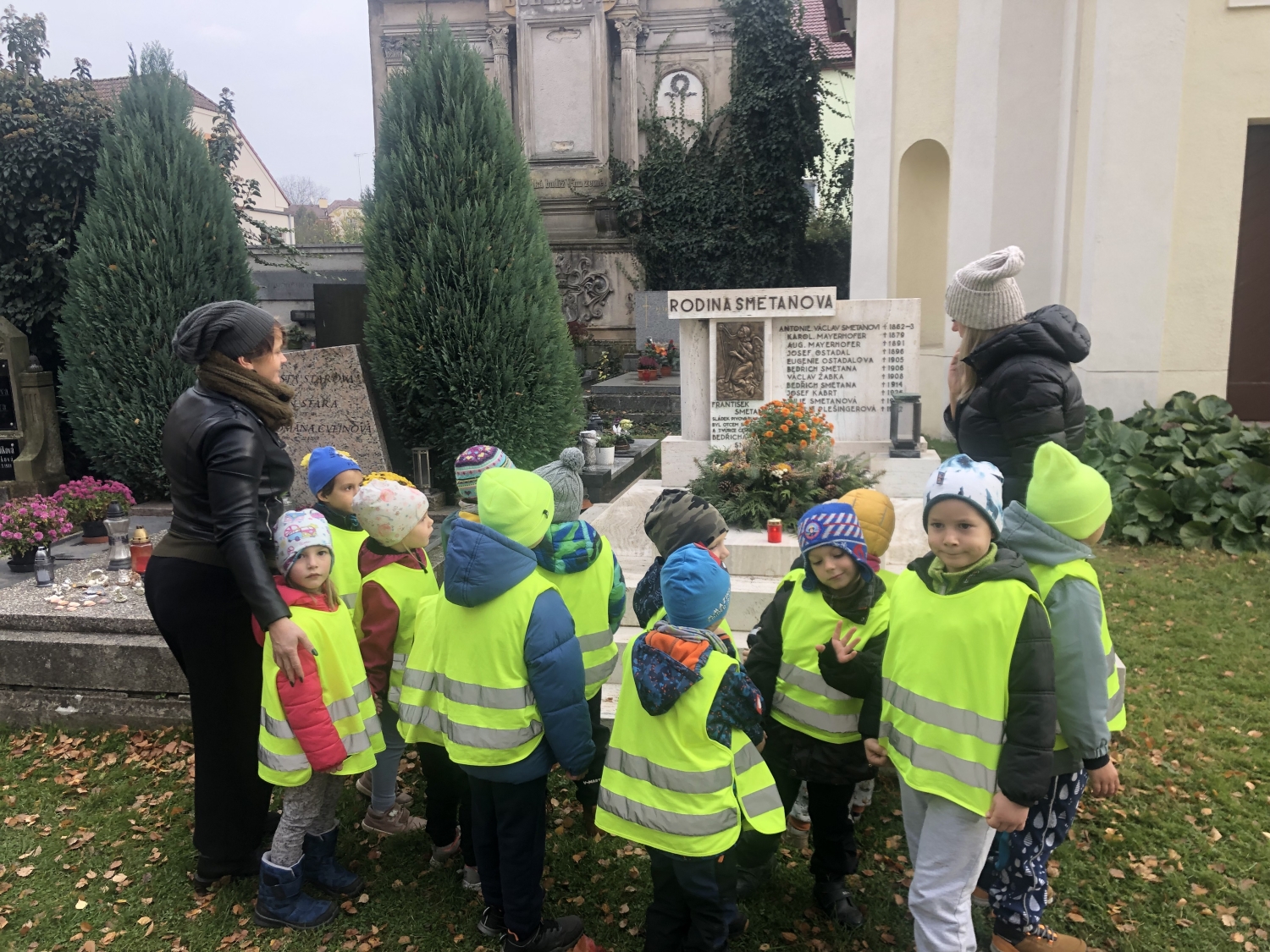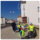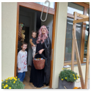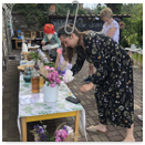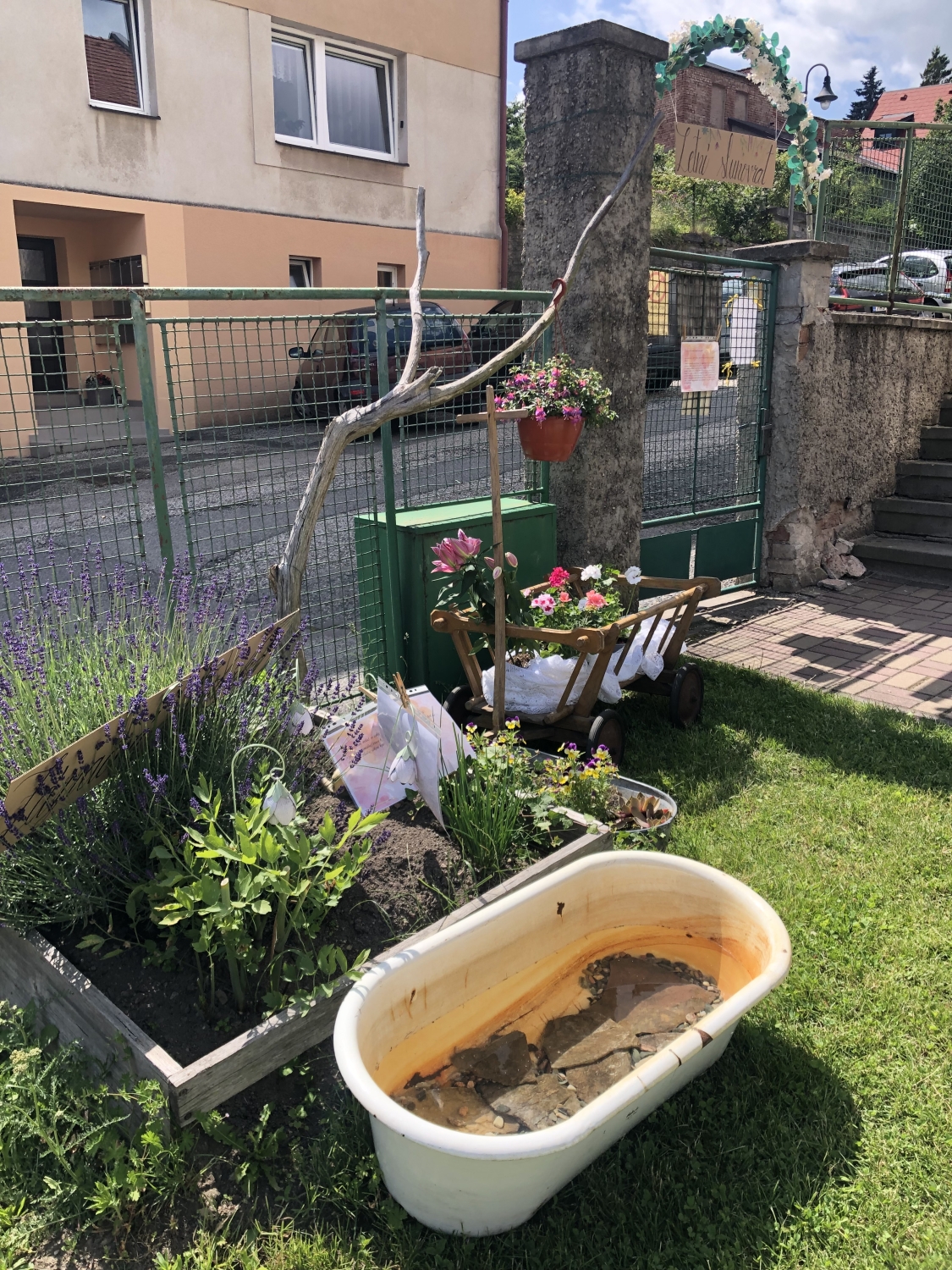 Předání kytiček do nedalekého pečovatelského domu