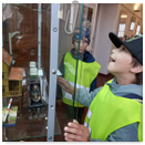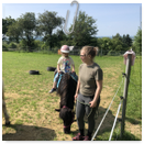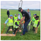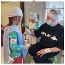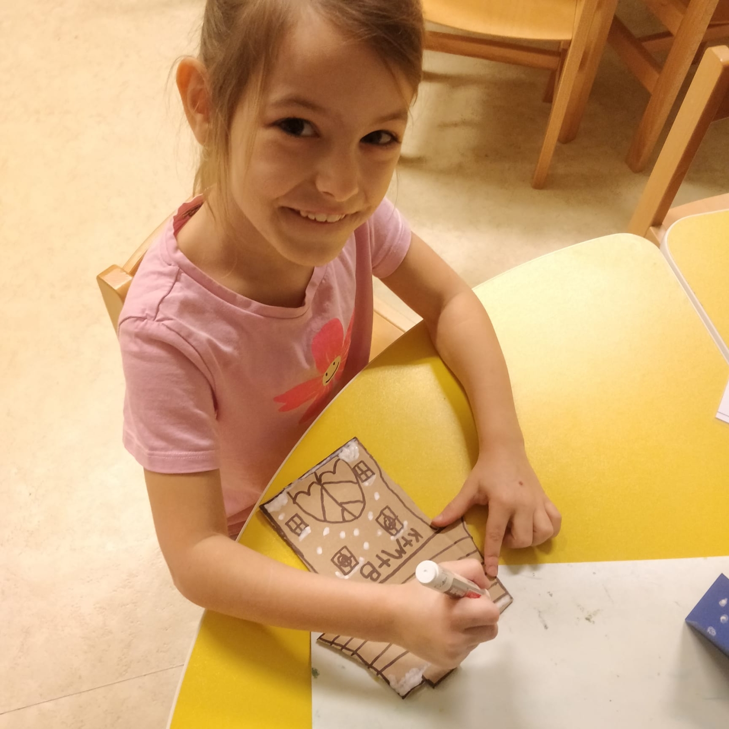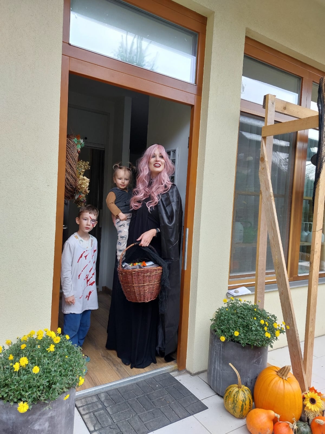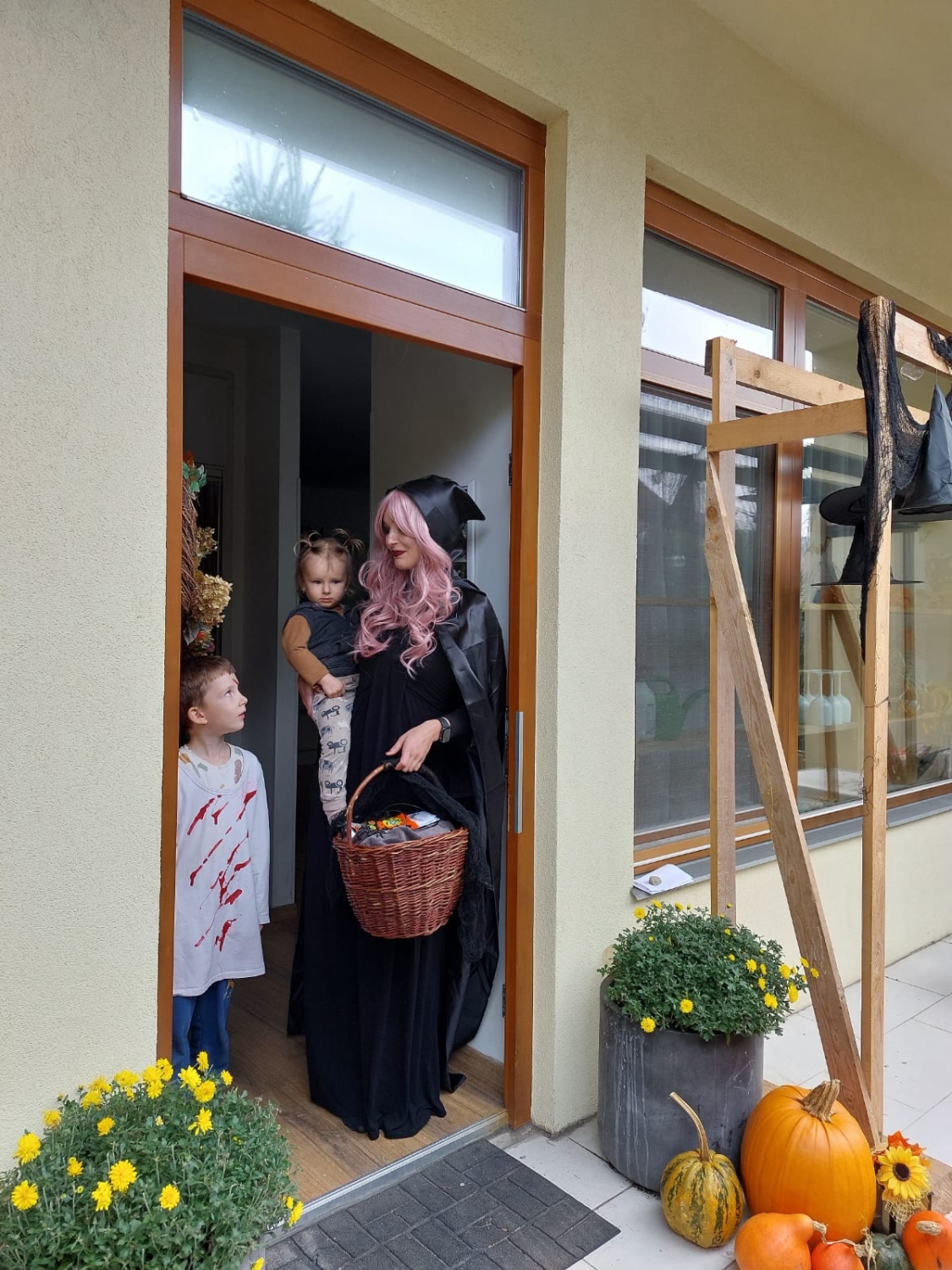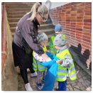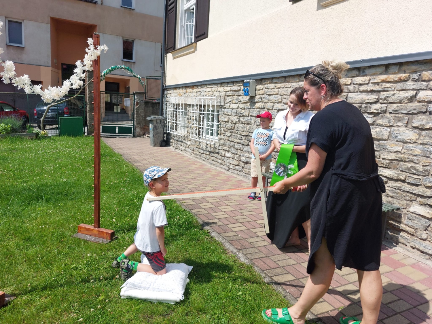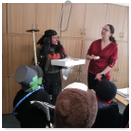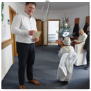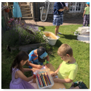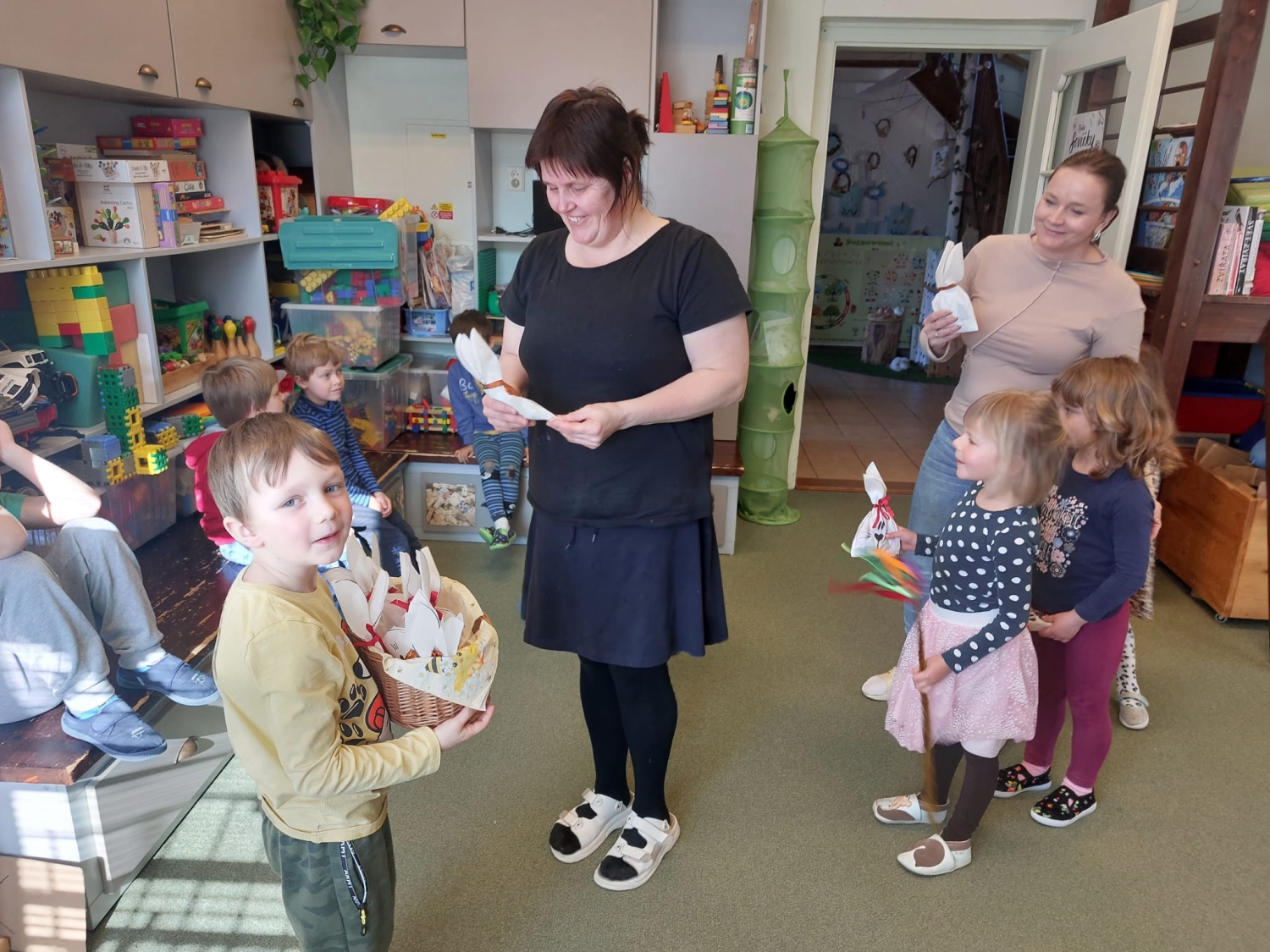 Předání kytiček do nedalekého pečovatelského domu