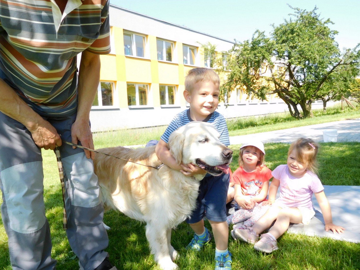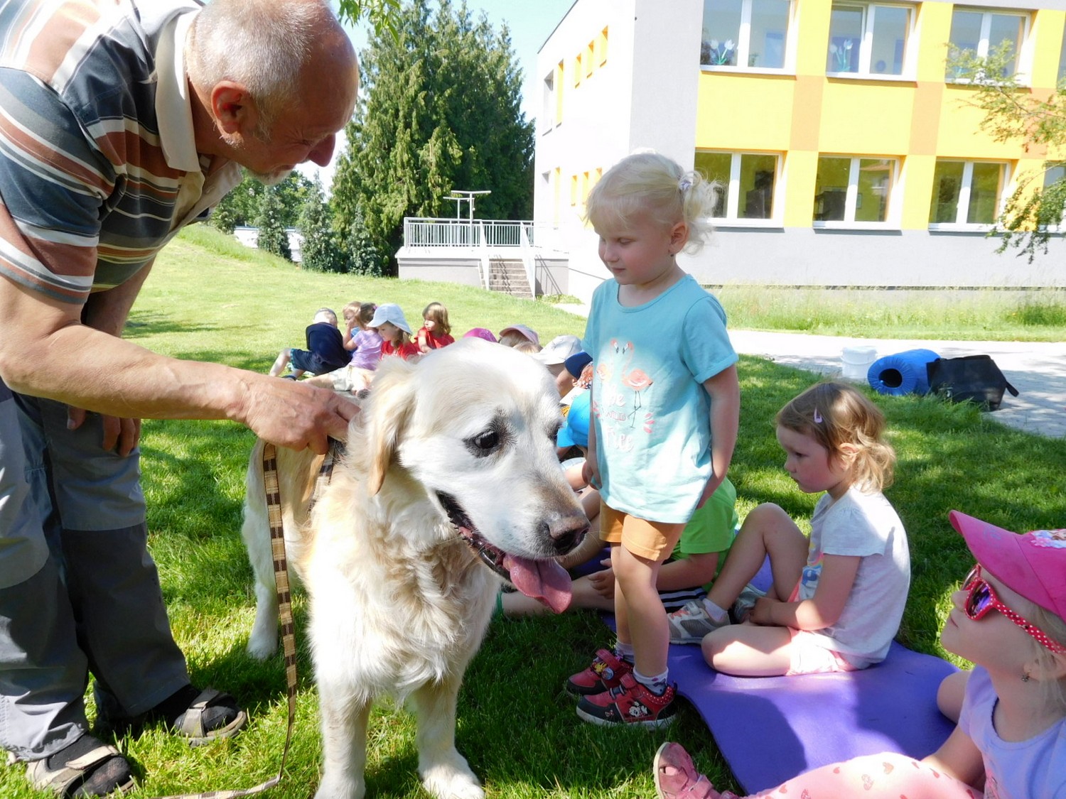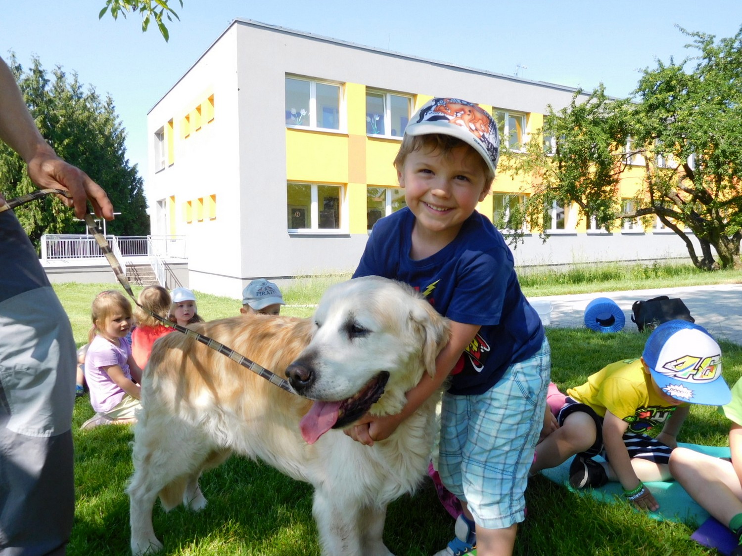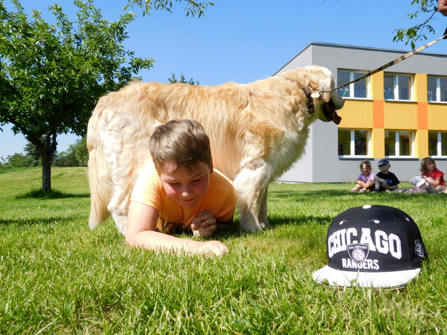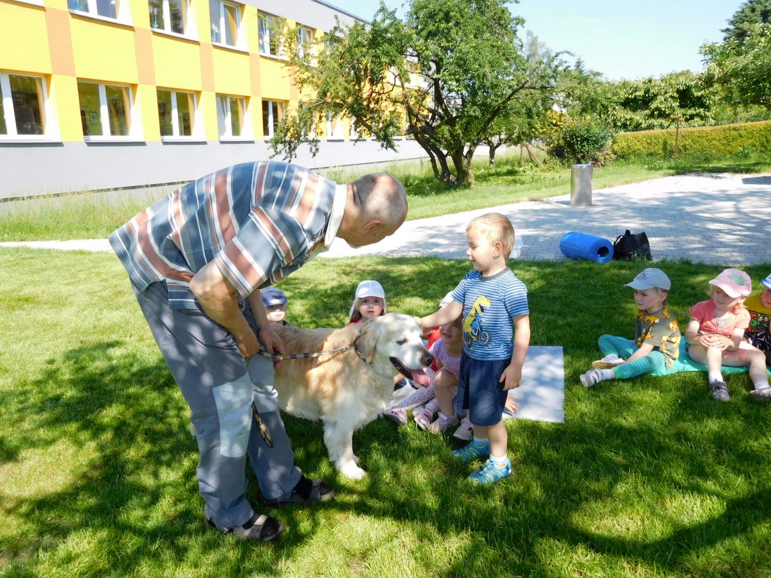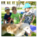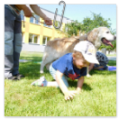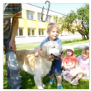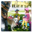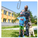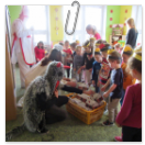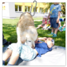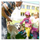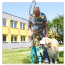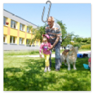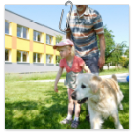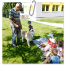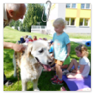 3. 6. 2019 třídu Kopretin navštívil pan Fabián se svým psem Joramem a předvedli nám ukázky z Canisterapie. Spolu s námi se ukázky zúčastnila i třída Zvonků.