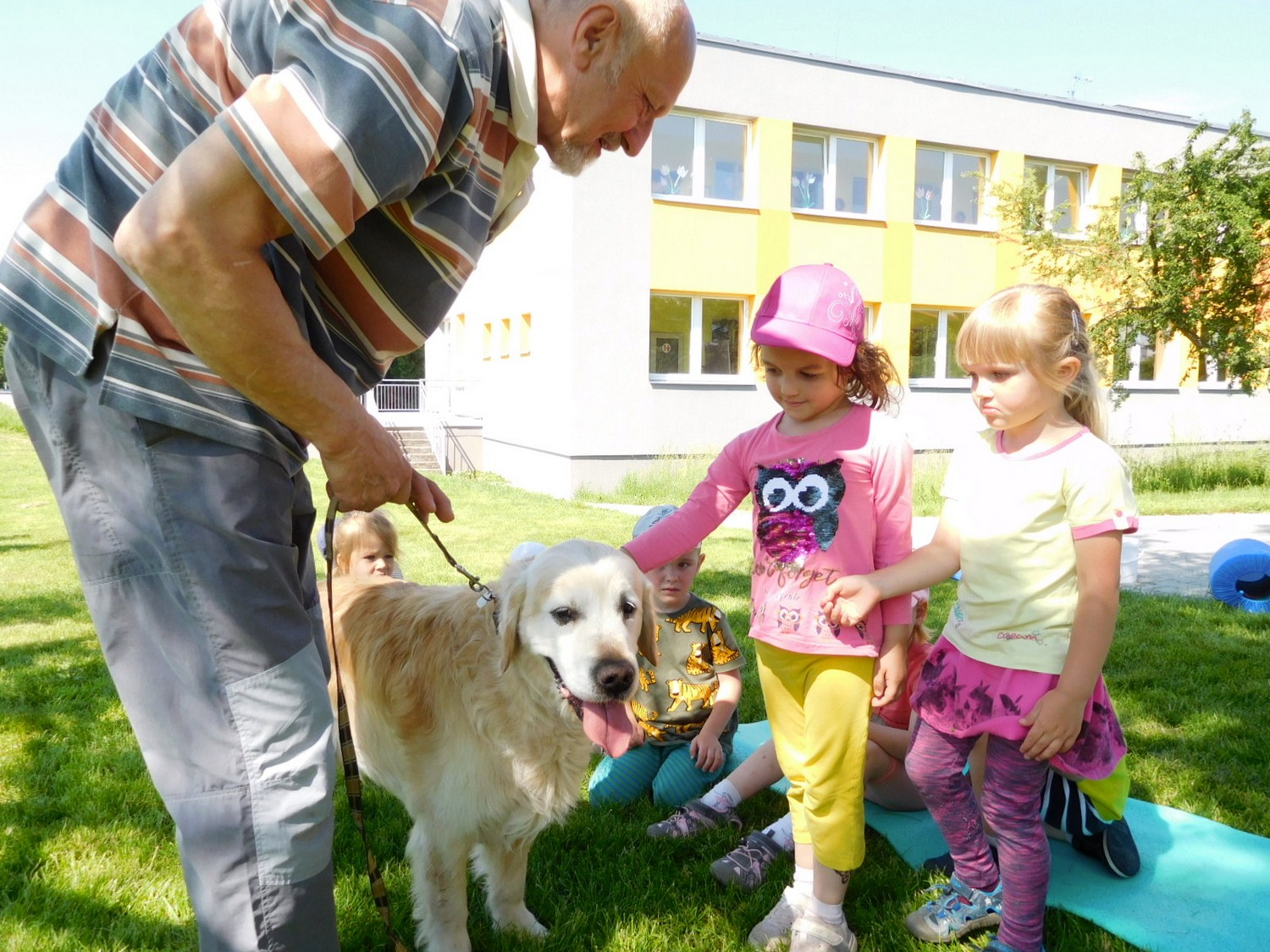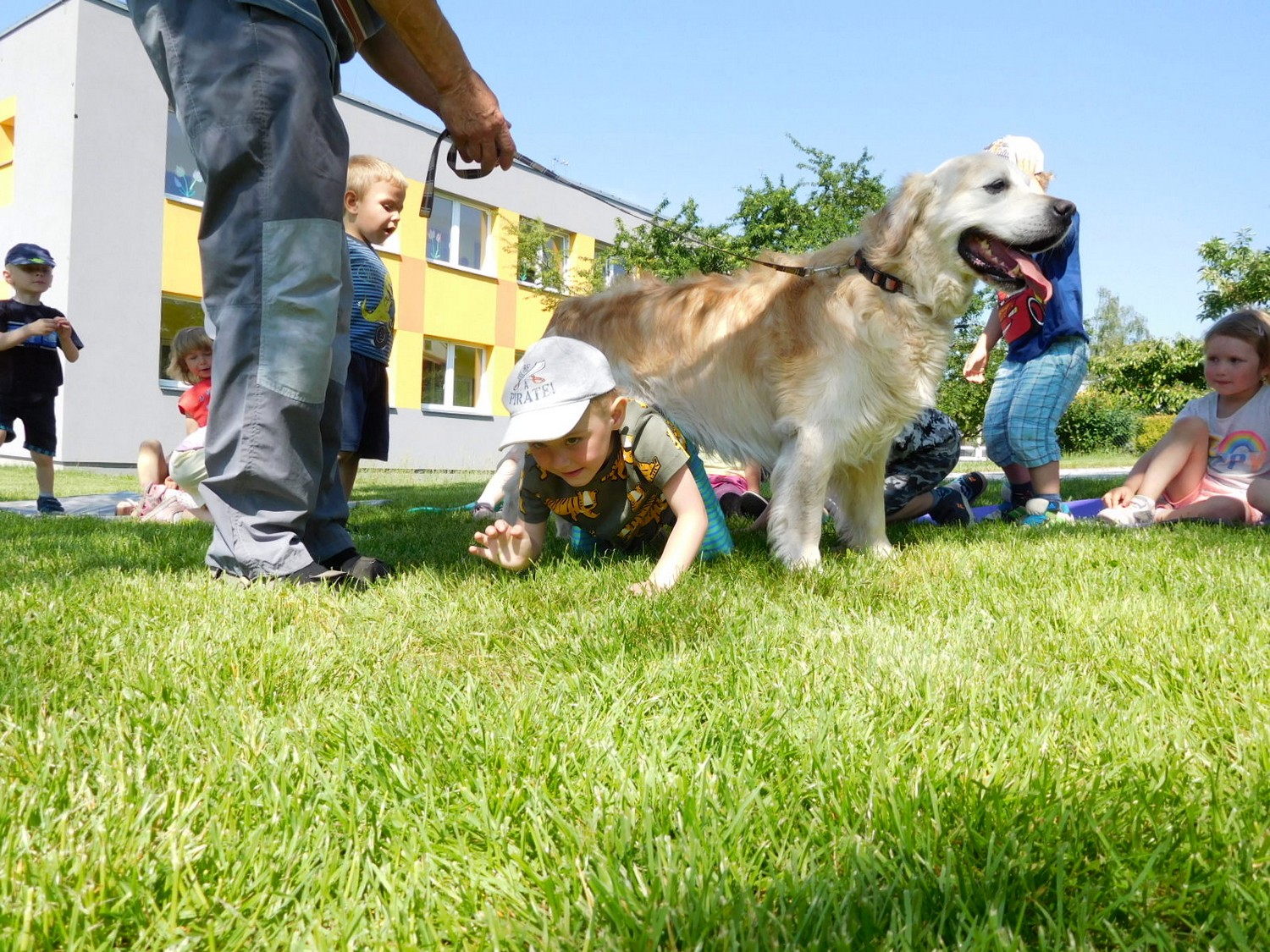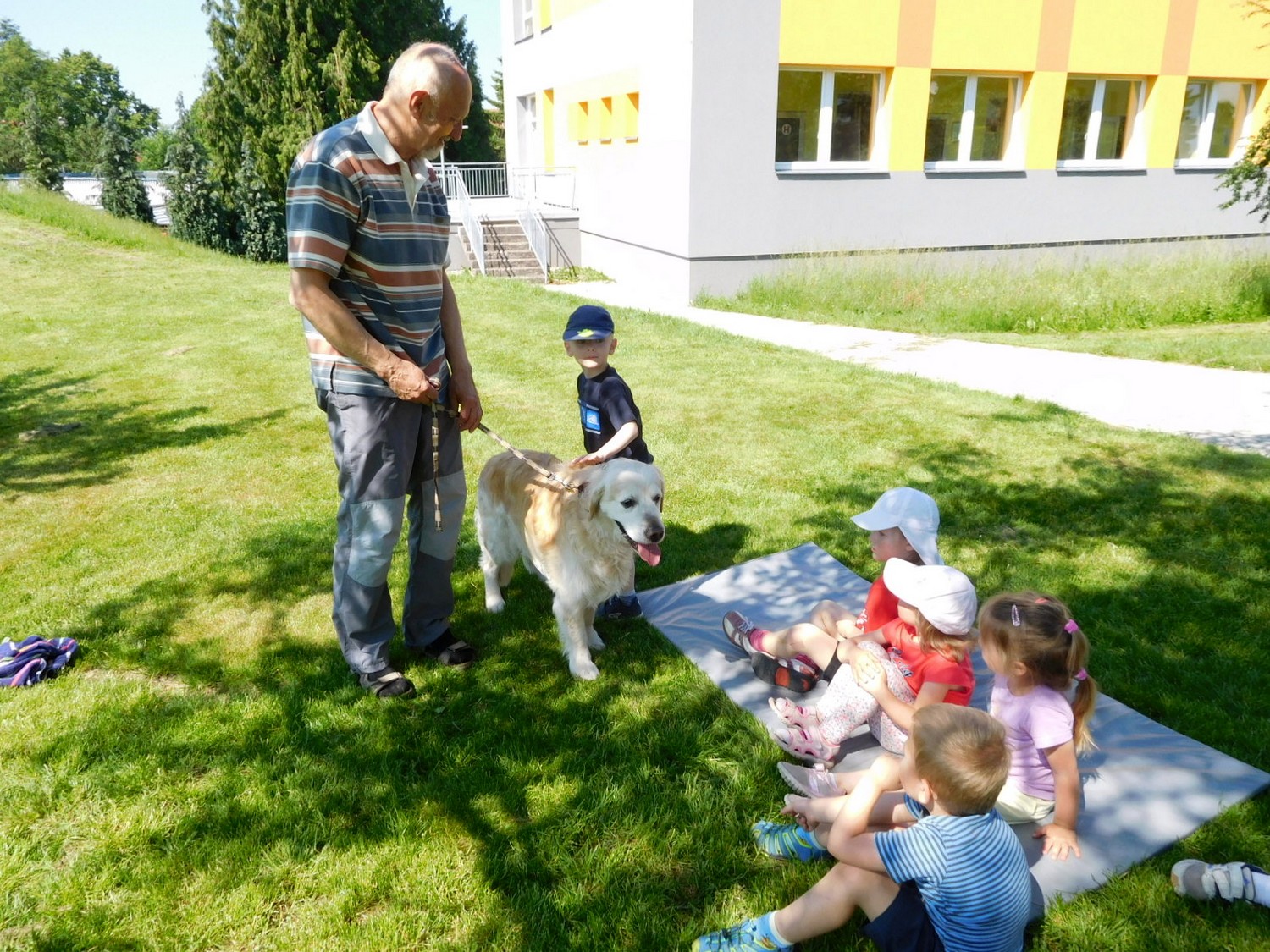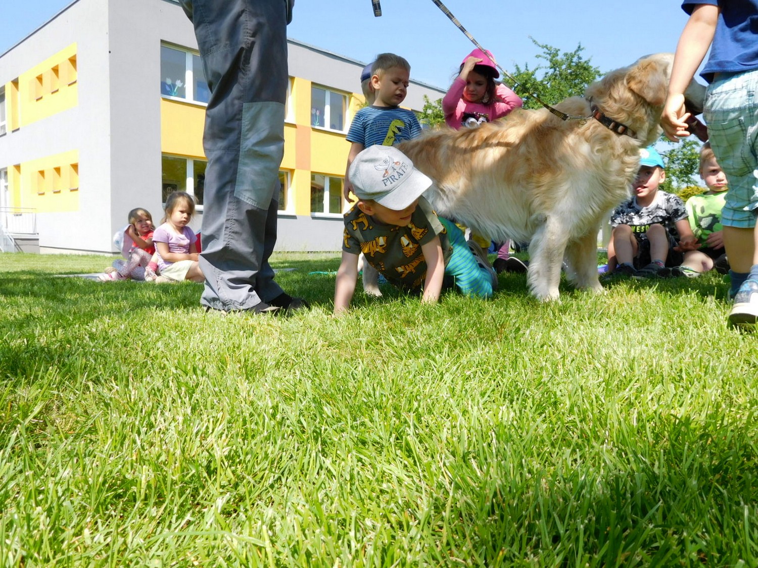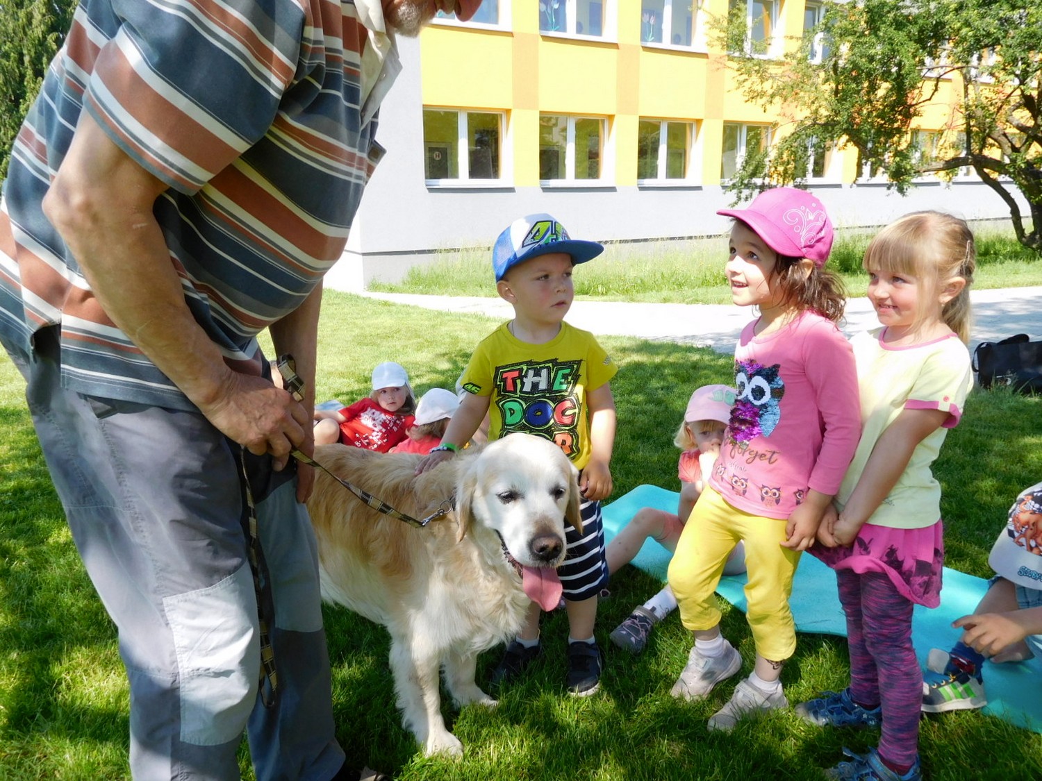 3. 6. 2019 třídu Kopretin navštívil pan Fabián se svým psem Joramem a předvedli nám ukázky z Canisterapie. Spolu s námi se ukázky zúčastnila i třída Zvonků.