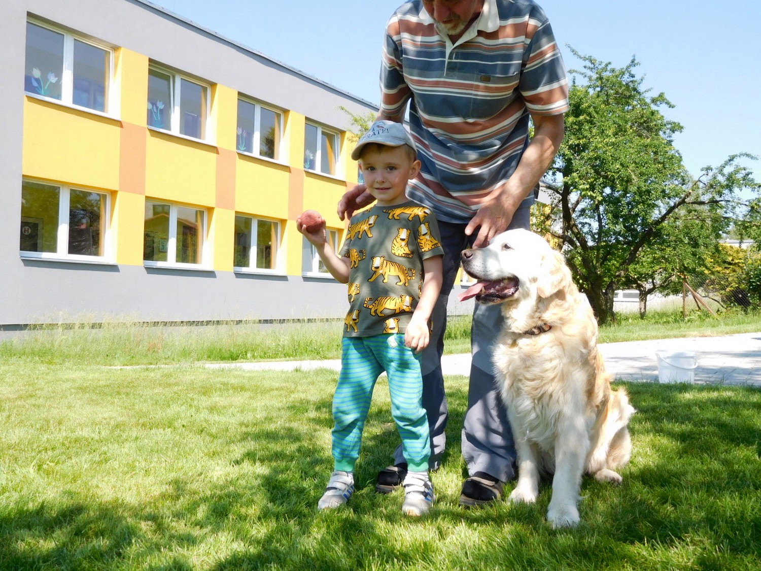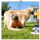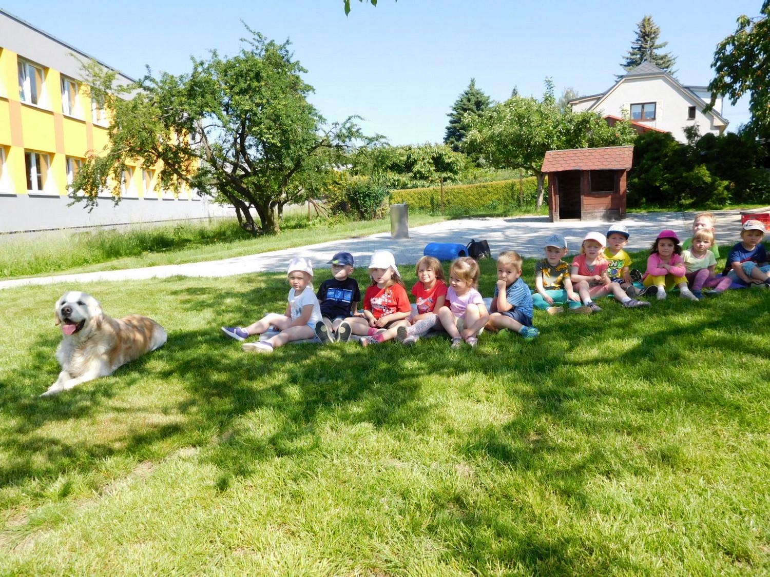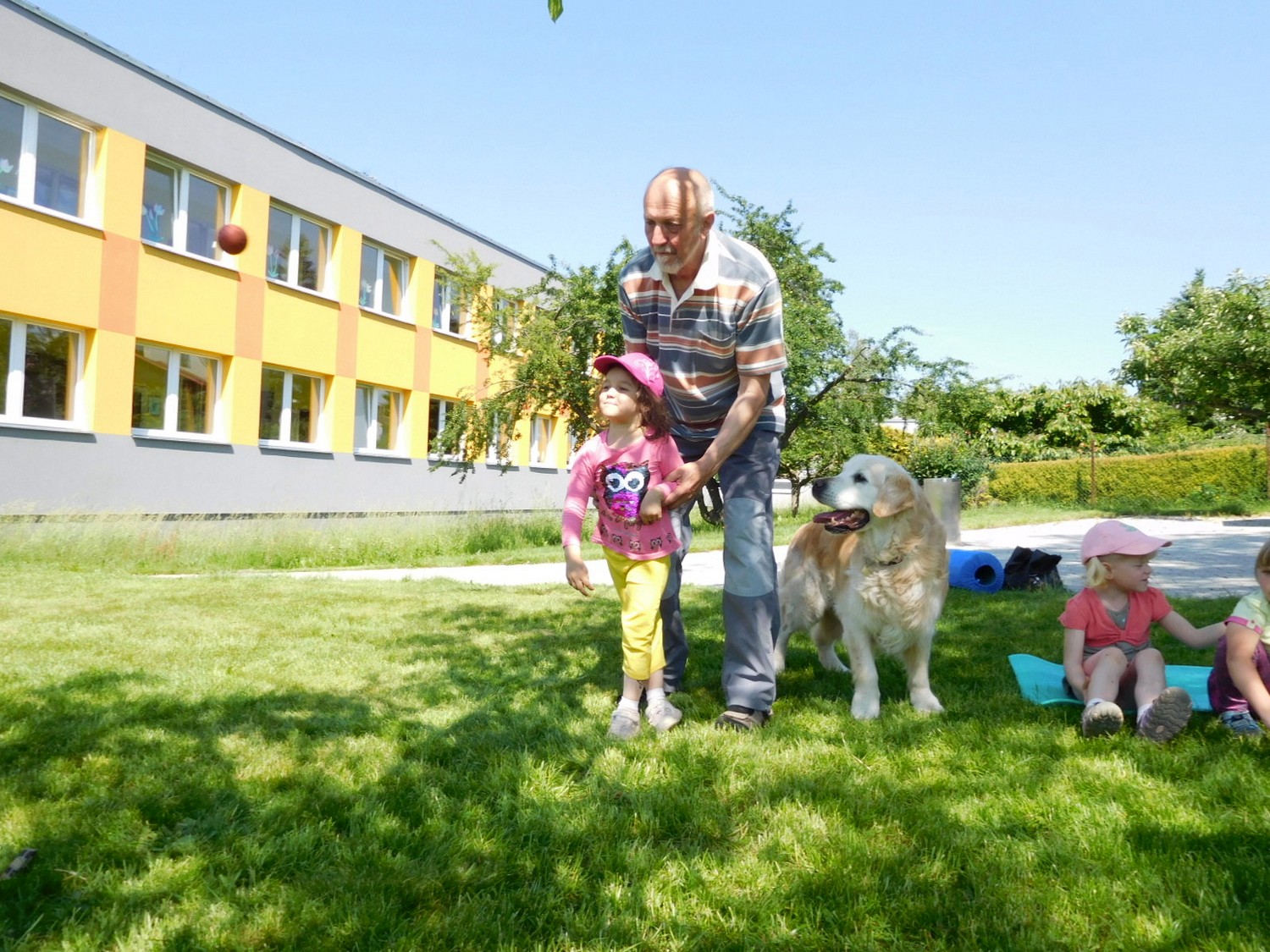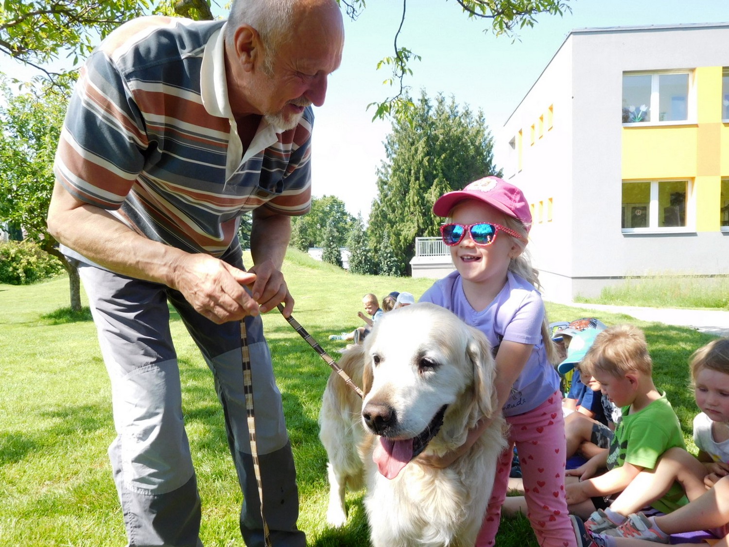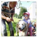 3. 6. 2019 třídu Kopretin navštívil pan Fabián se svým psem Joramem a předvedli nám ukázky z Canisterapie. Spolu s námi se ukázky zúčastnila i třída Zvonků.