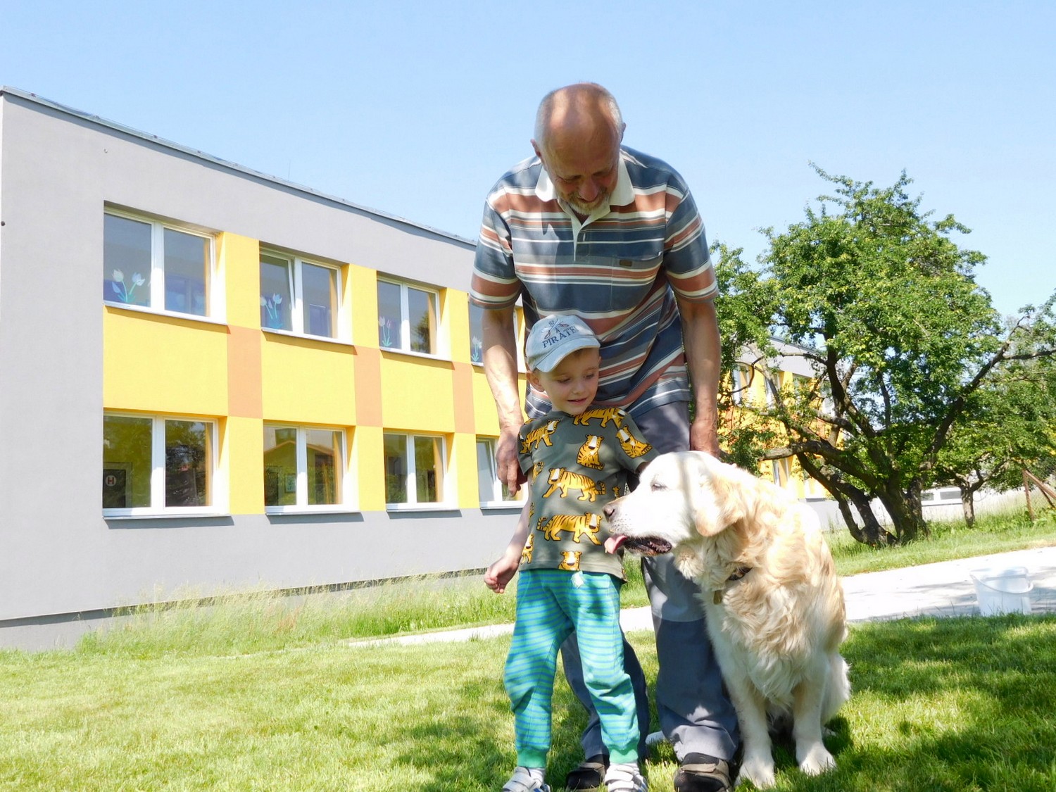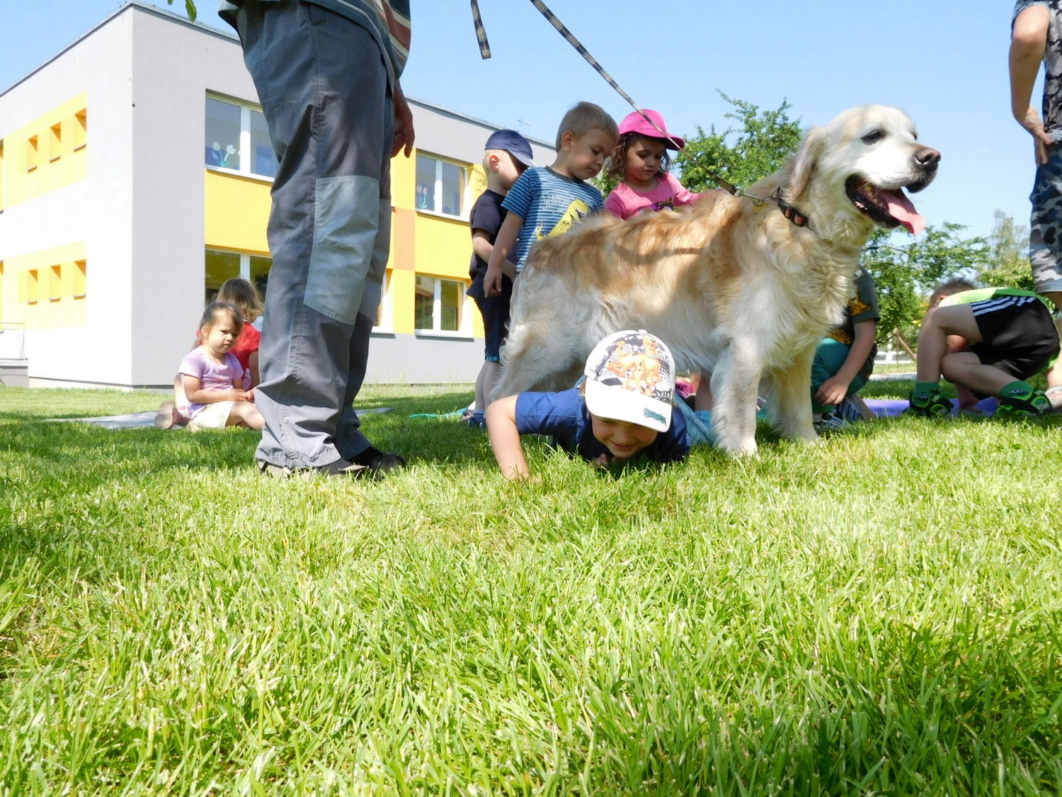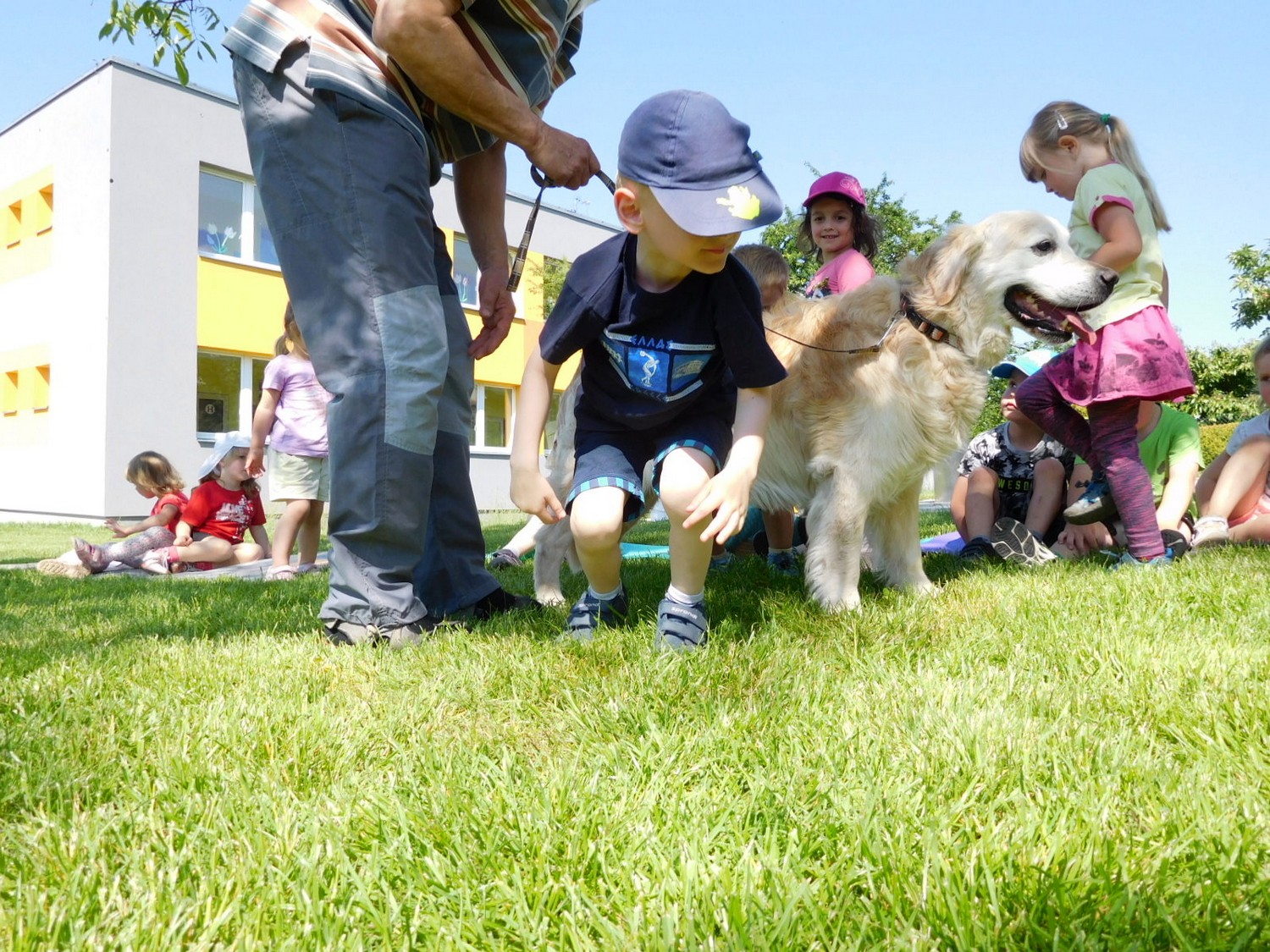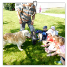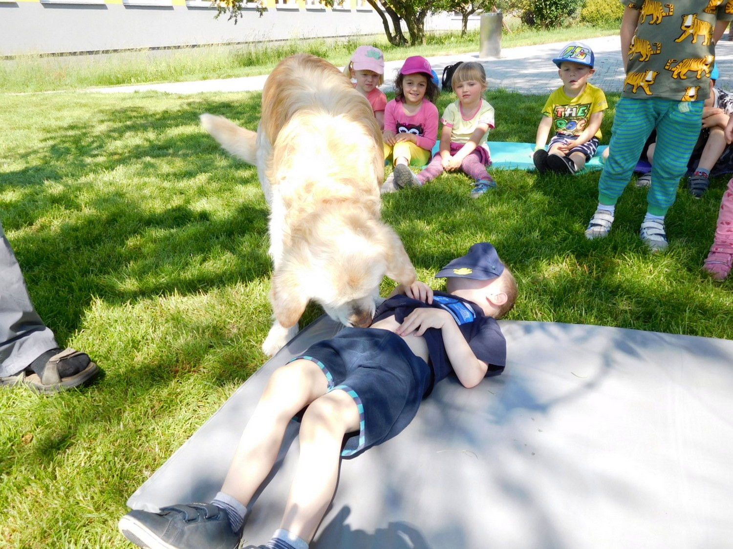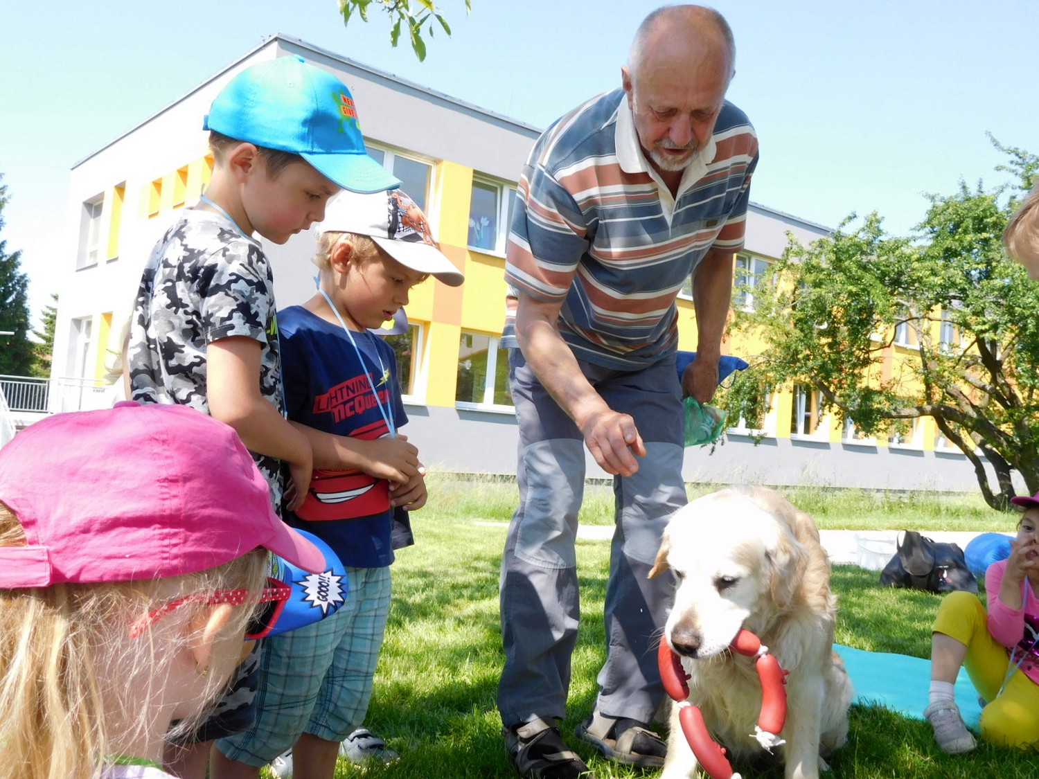 3. 6. 2019 třídu Kopretin navštívil pan Fabián se svým psem Joramem a předvedli nám ukázky z Canisterapie. Spolu s námi se ukázky zúčastnila i třída Zvonků.