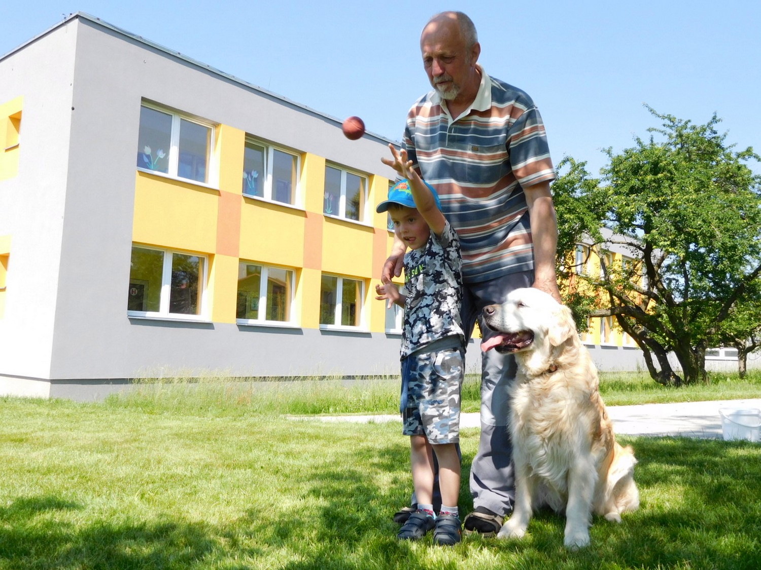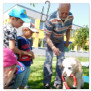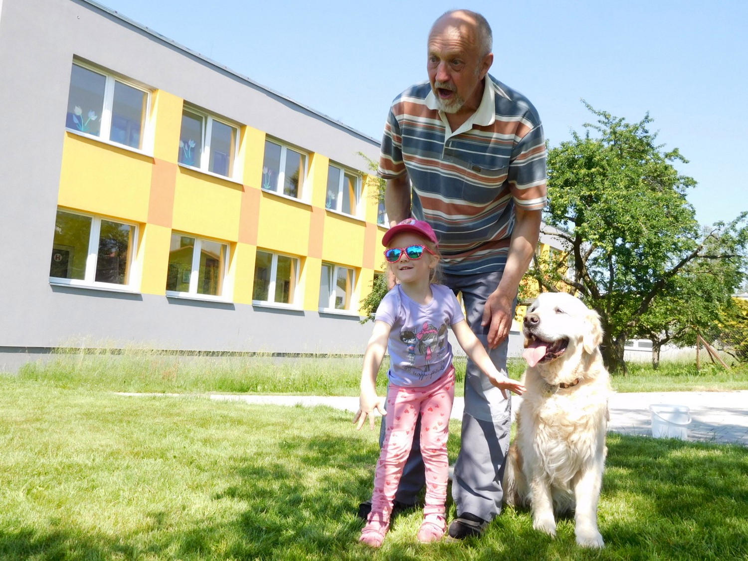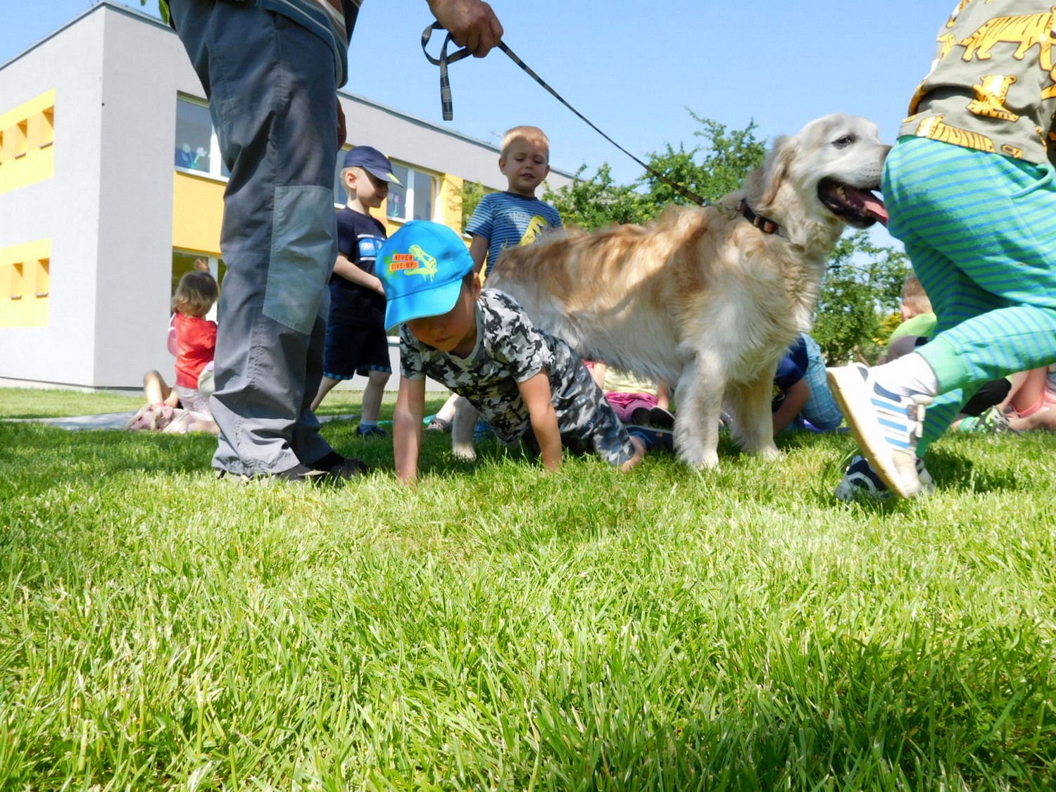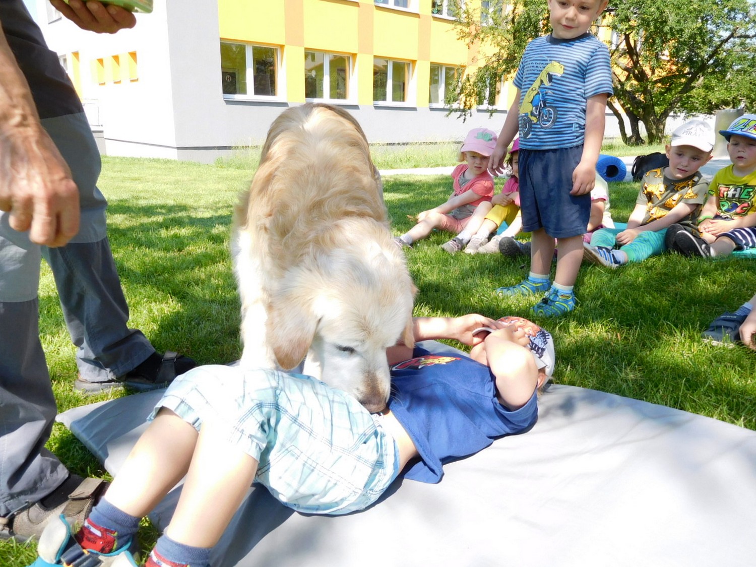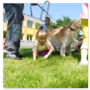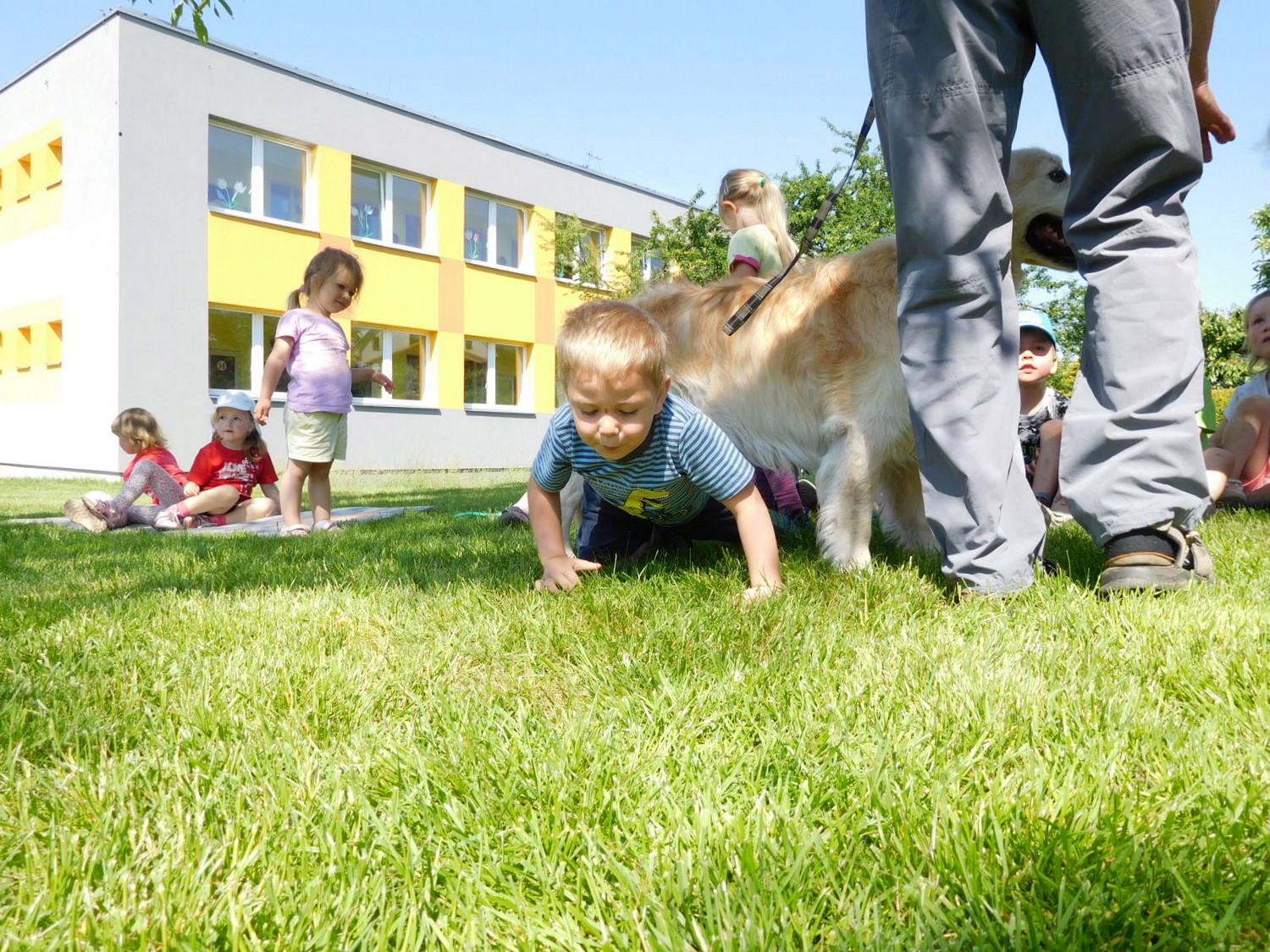 3. 6. 2019 třídu Kopretin navštívil pan Fabián se svým psem Joramem a předvedli nám ukázky z Canisterapie. Spolu s námi se ukázky zúčastnila i třída Zvonků.
