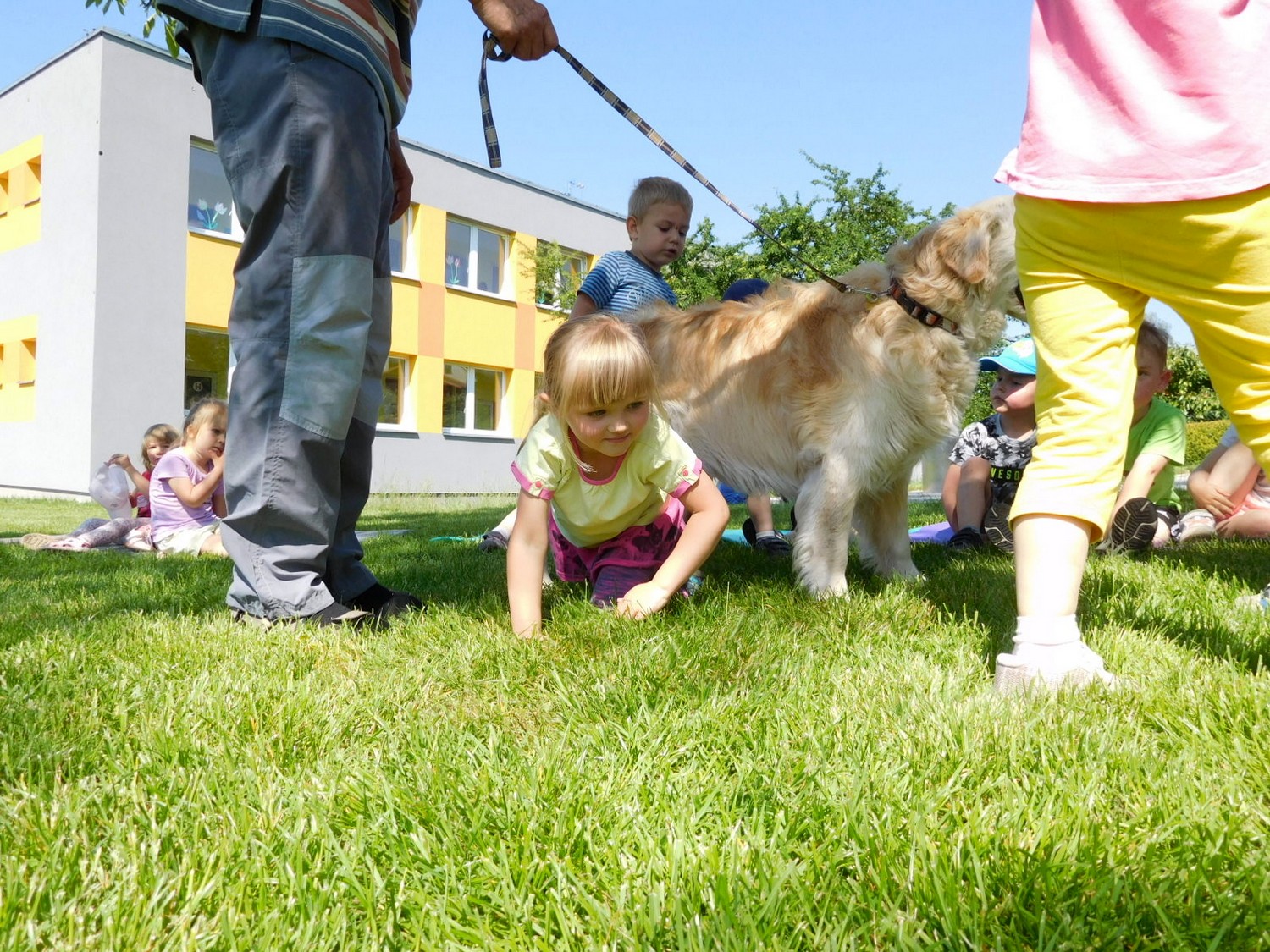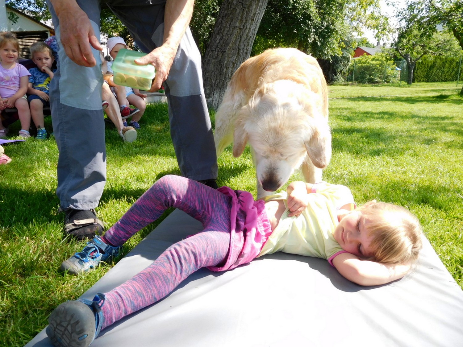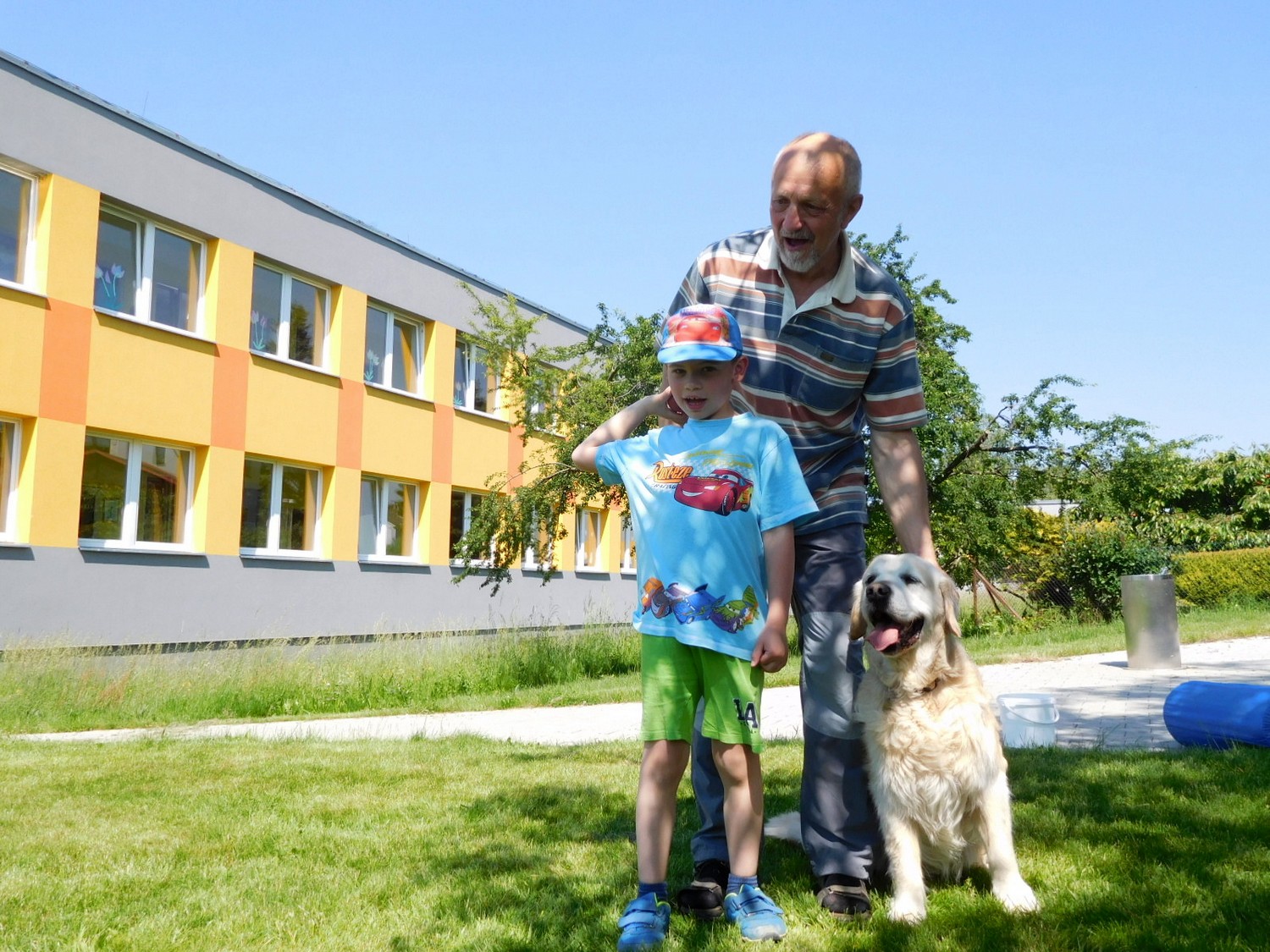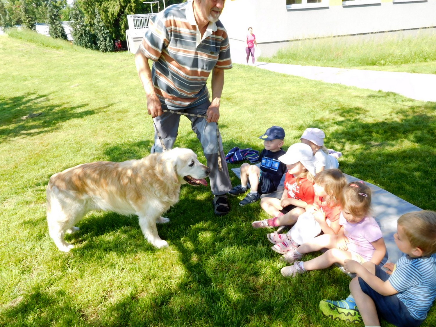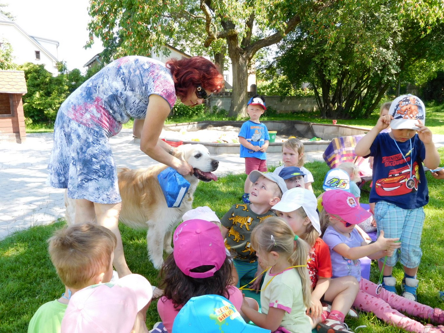 3. 6. 2019 třídu Kopretin navštívil pan Fabián se svým psem Joramem a předvedli nám ukázky z Canisterapie. Spolu s námi se ukázky zúčastnila i třída Zvonků.