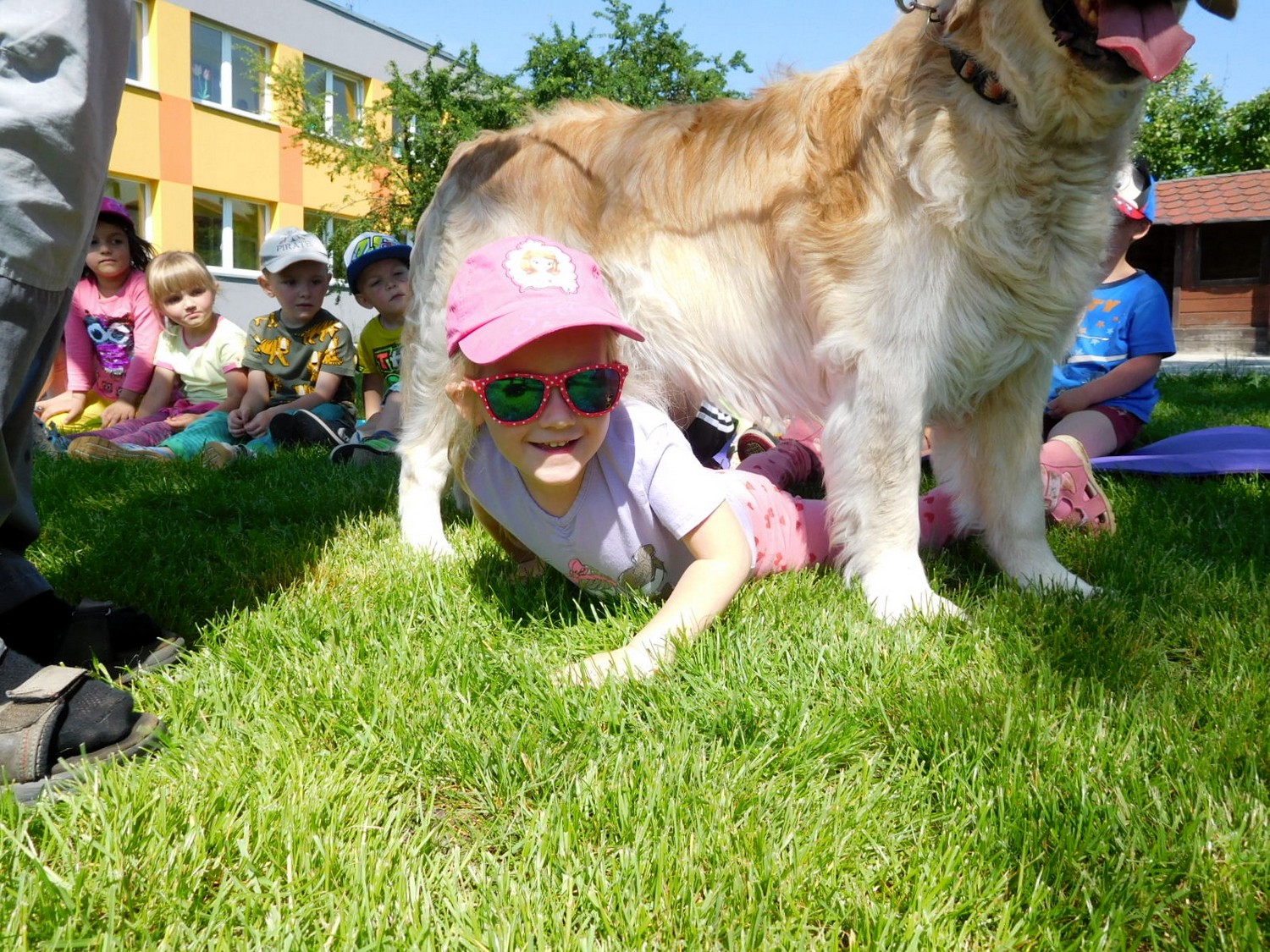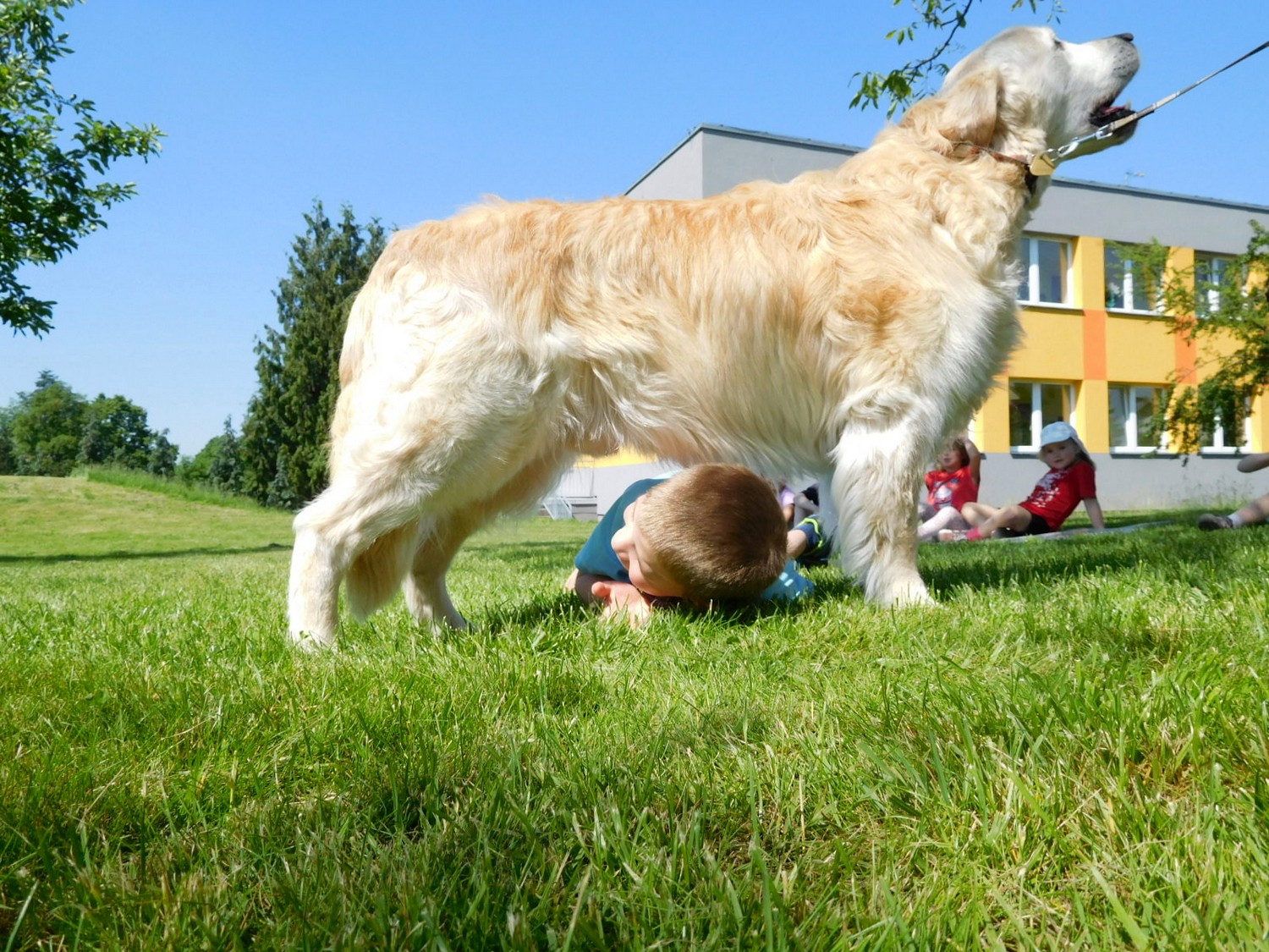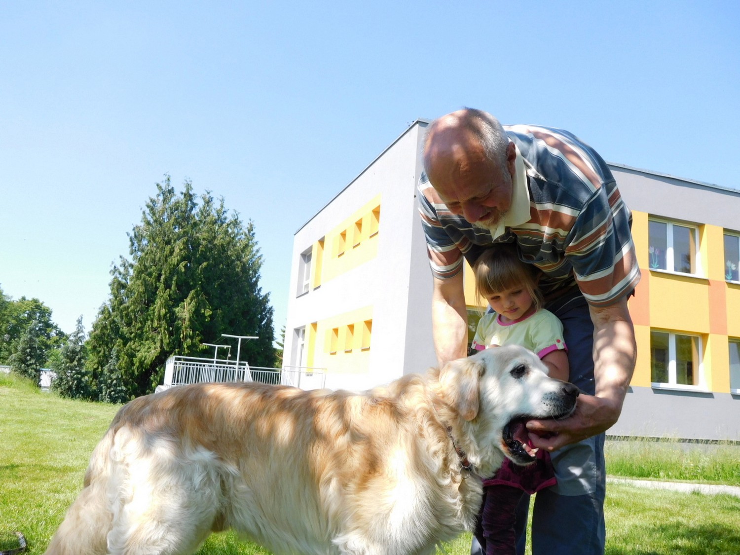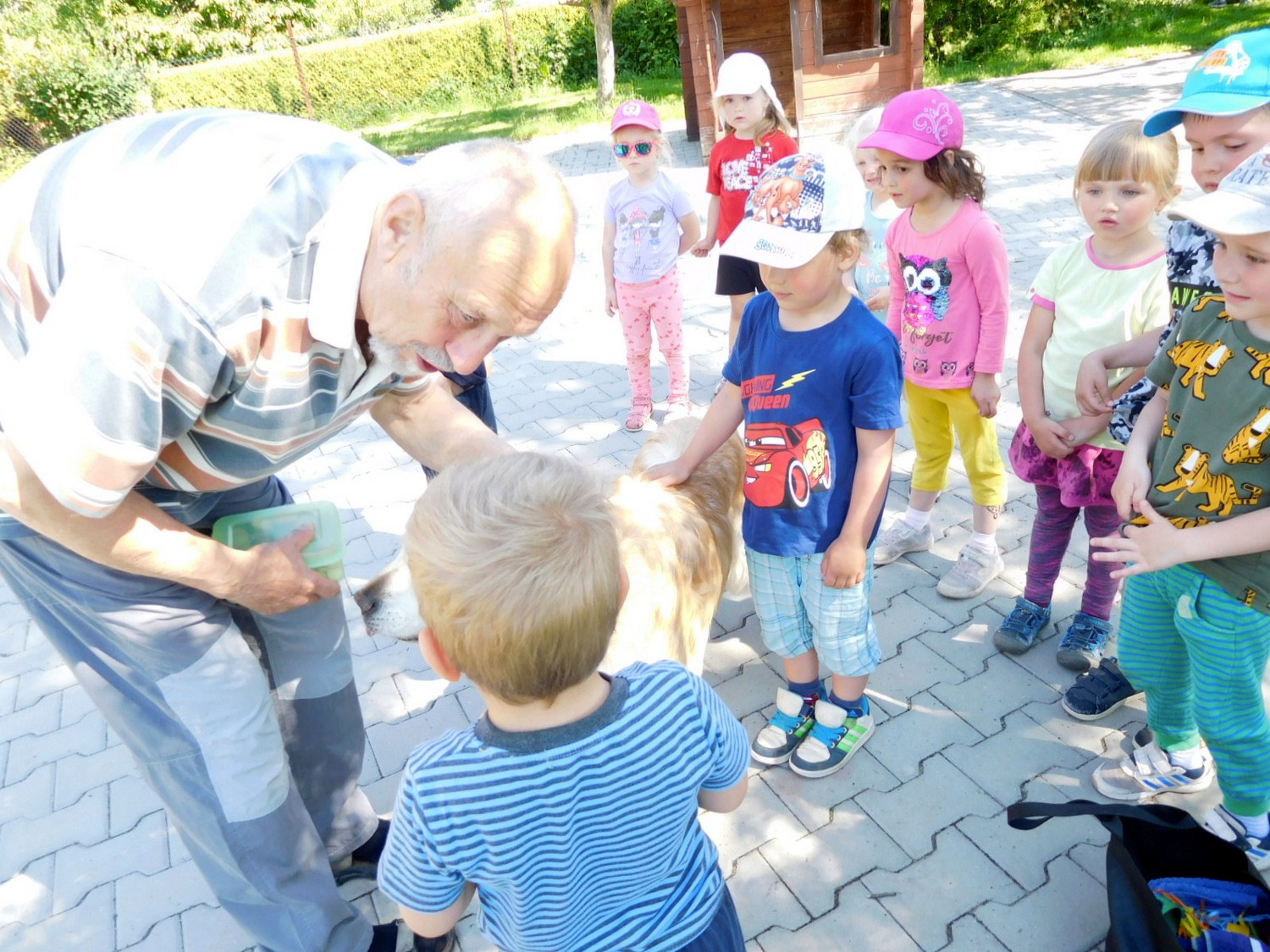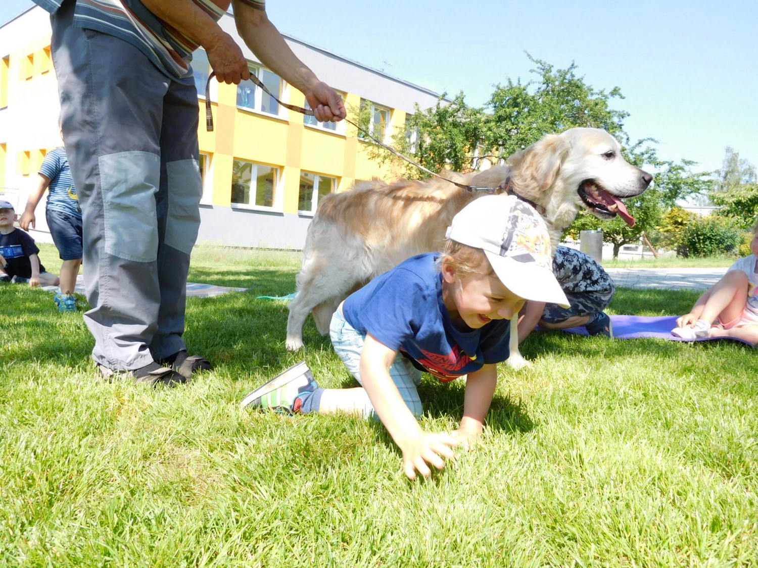 3. 6. 2019 třídu Kopretin navštívil pan Fabián se svým psem Joramem a předvedli nám ukázky z Canisterapie. Spolu s námi se ukázky zúčastnila i třída Zvonků.
