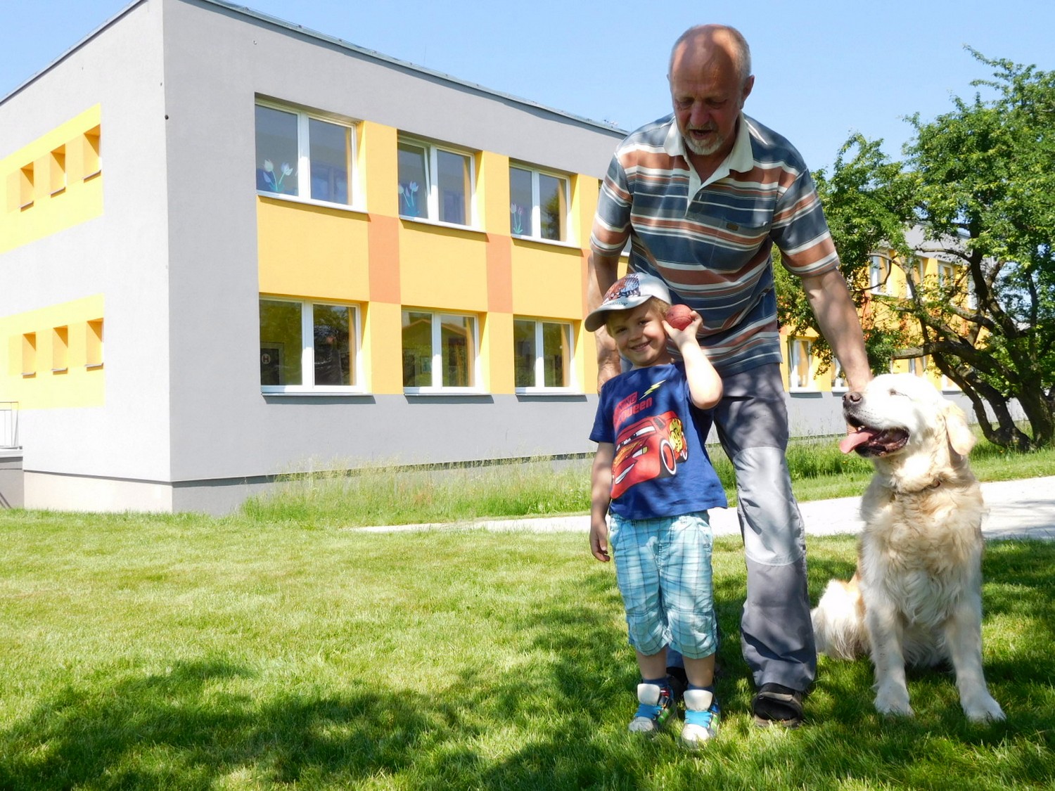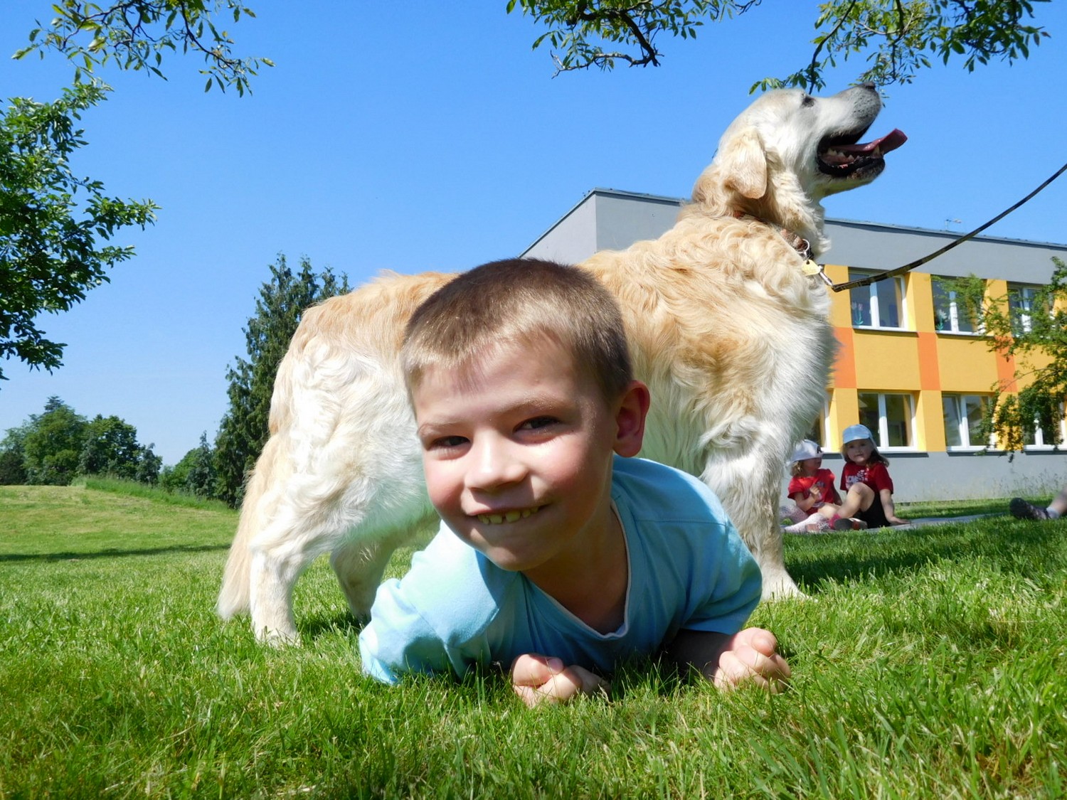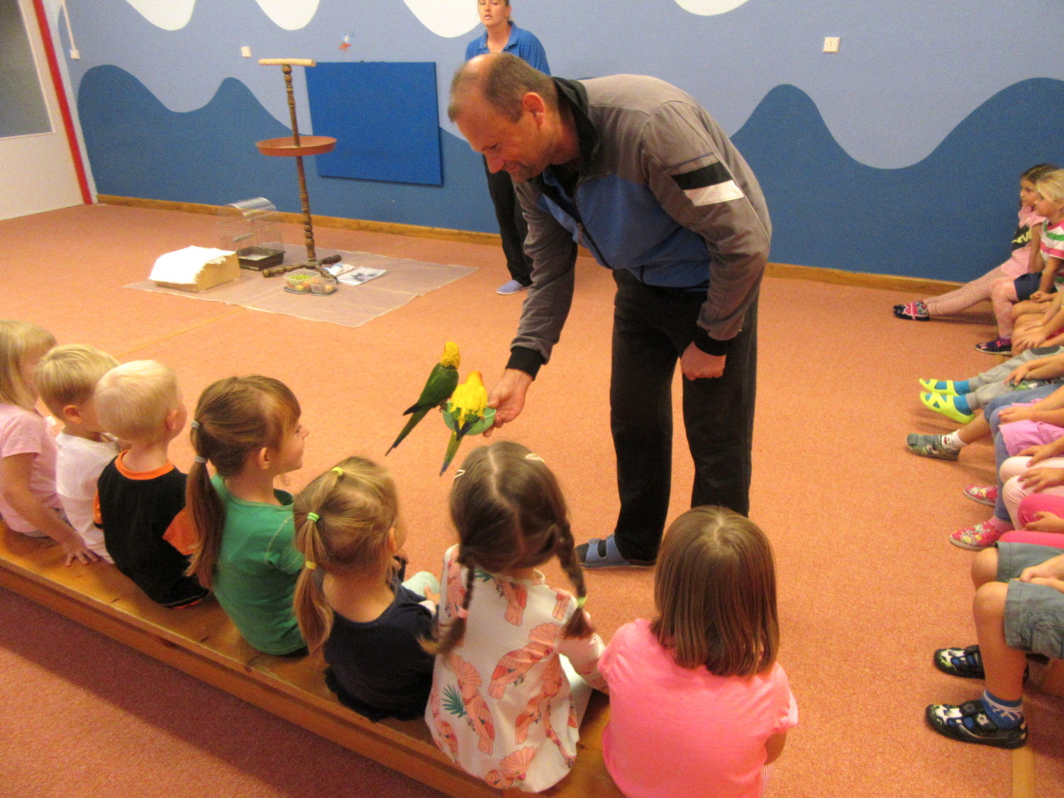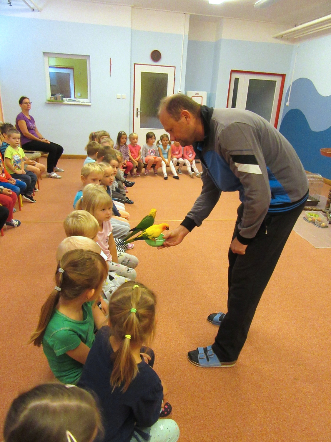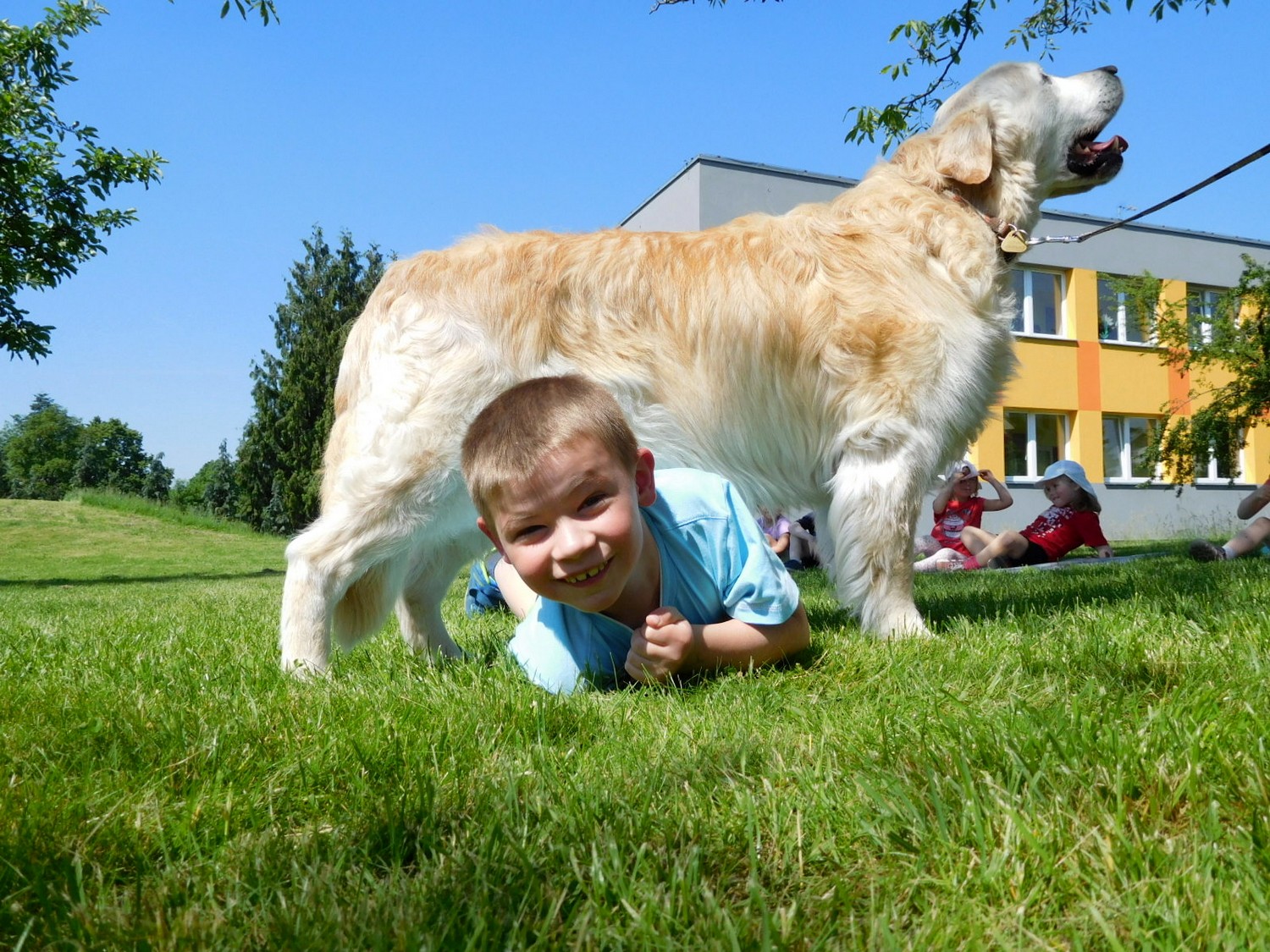 3. 6. 2019 třídu Kopretin navštívil pan Fabián se svým psem Joramem a předvedli nám ukázky z Canisterapie. Spolu s námi se ukázky zúčastnila i třída Zvonků.