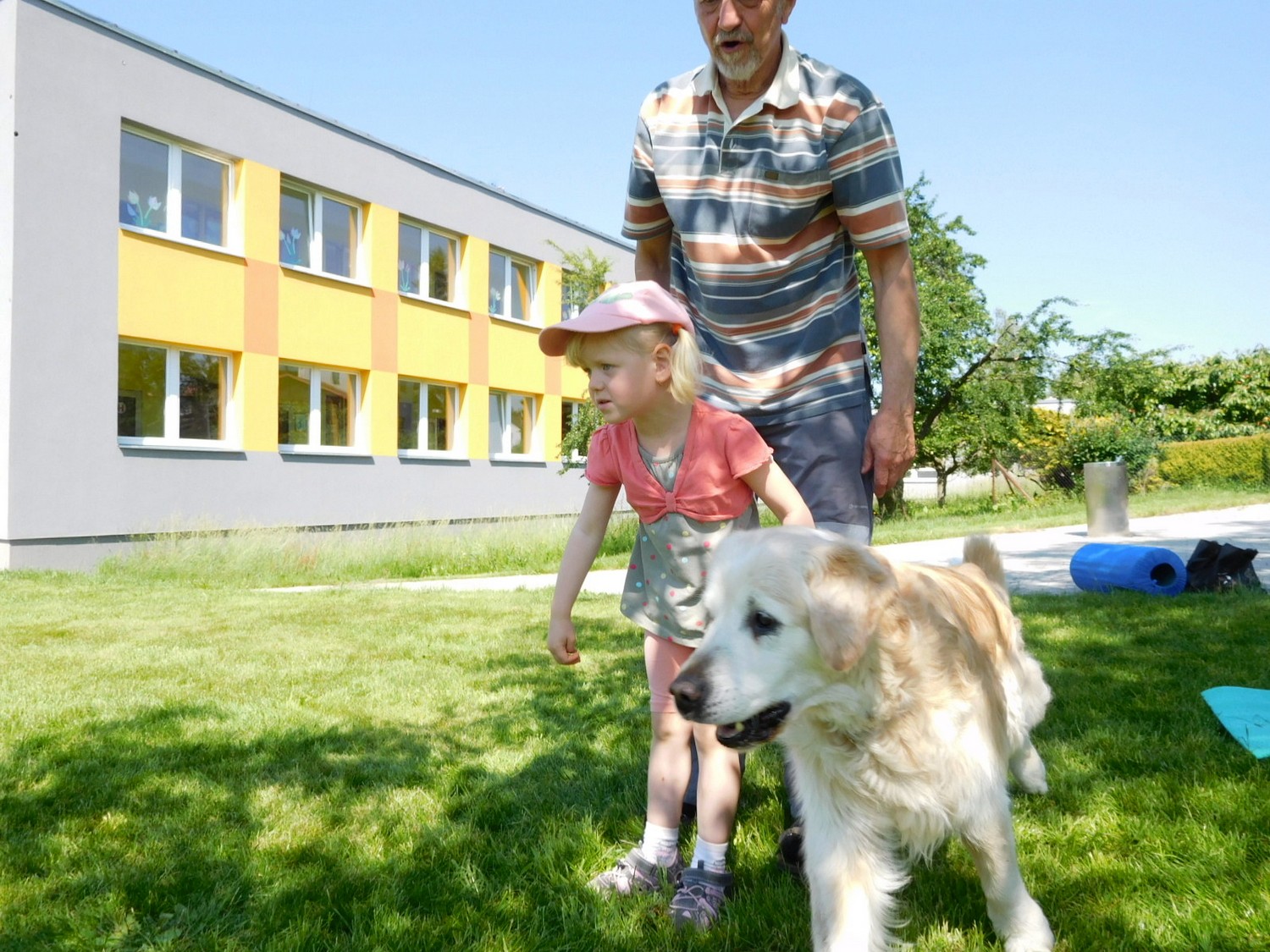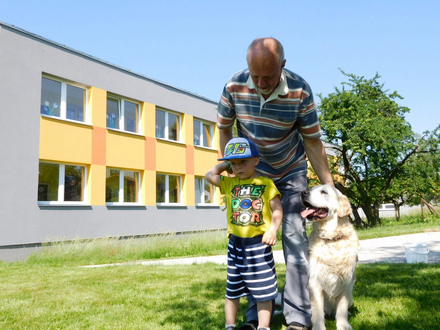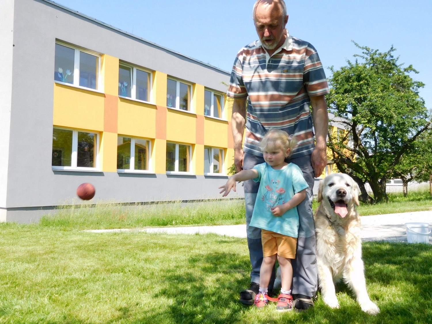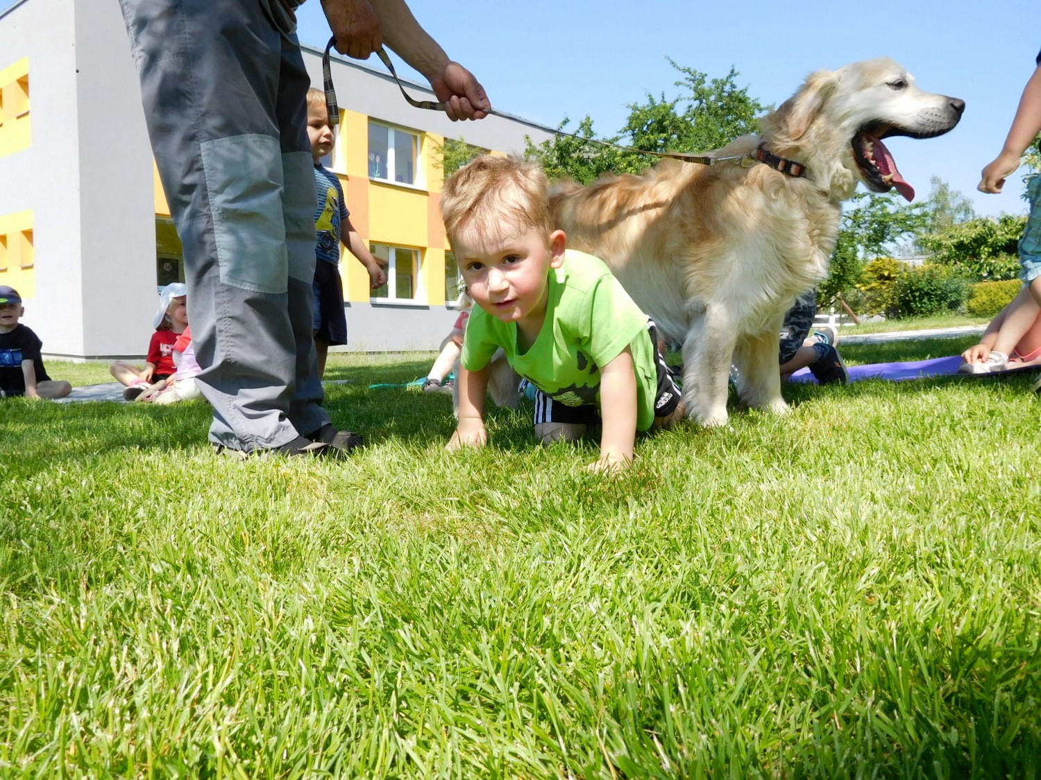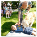 3. 6. 2019 třídu Kopretin navštívil pan Fabián se svým psem Joramem a předvedli nám ukázky z Canisterapie. Spolu s námi se ukázky zúčastnila i třída Zvonků.