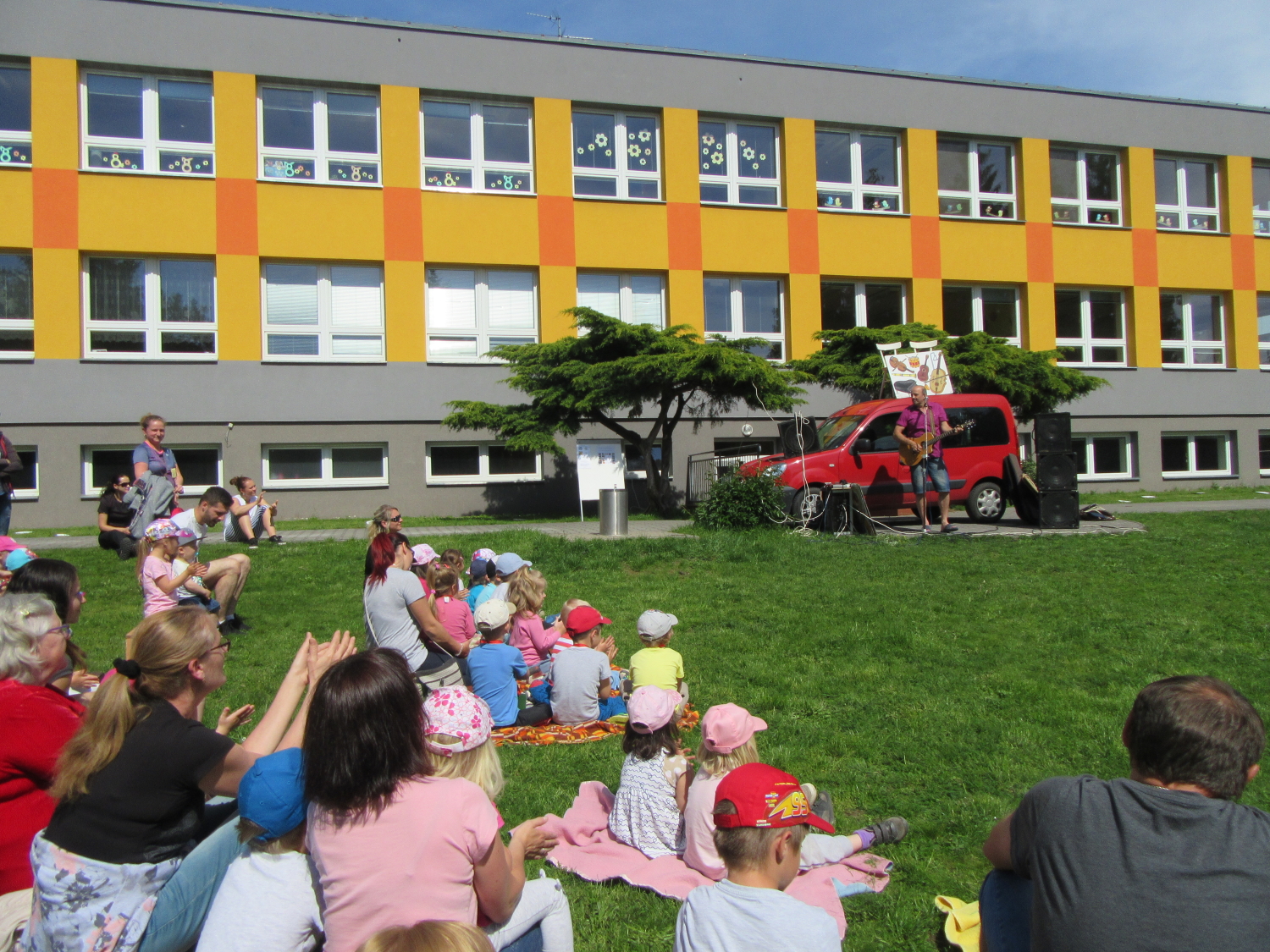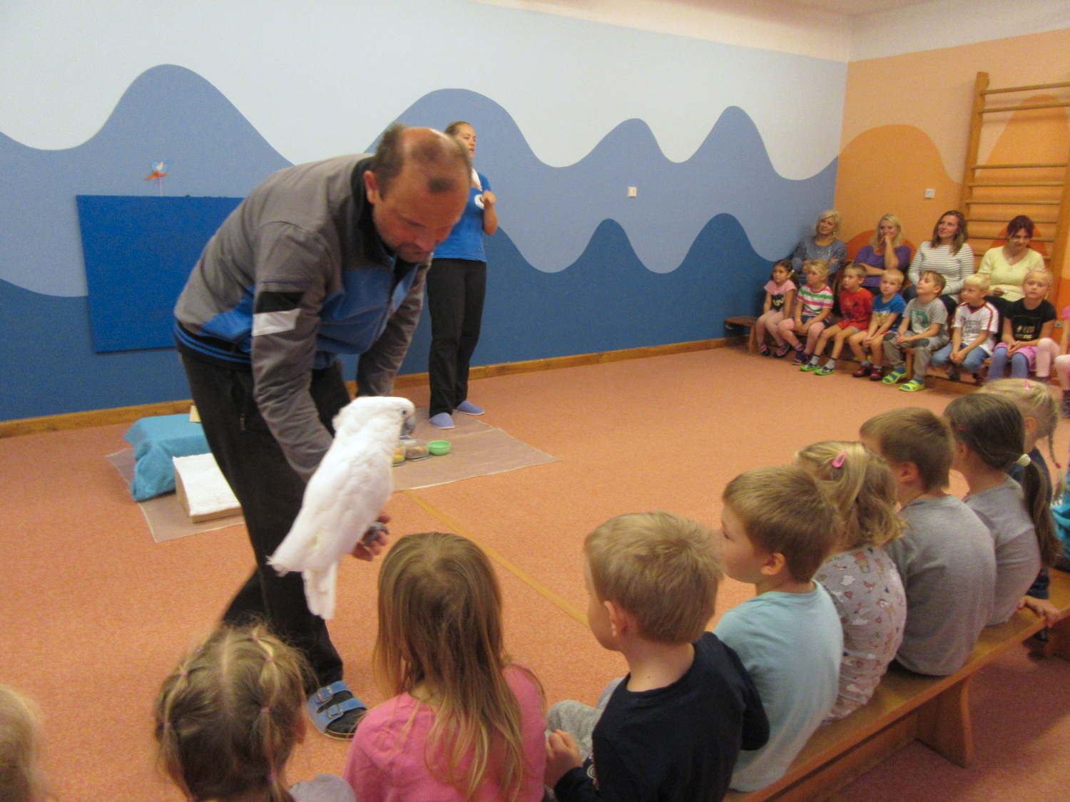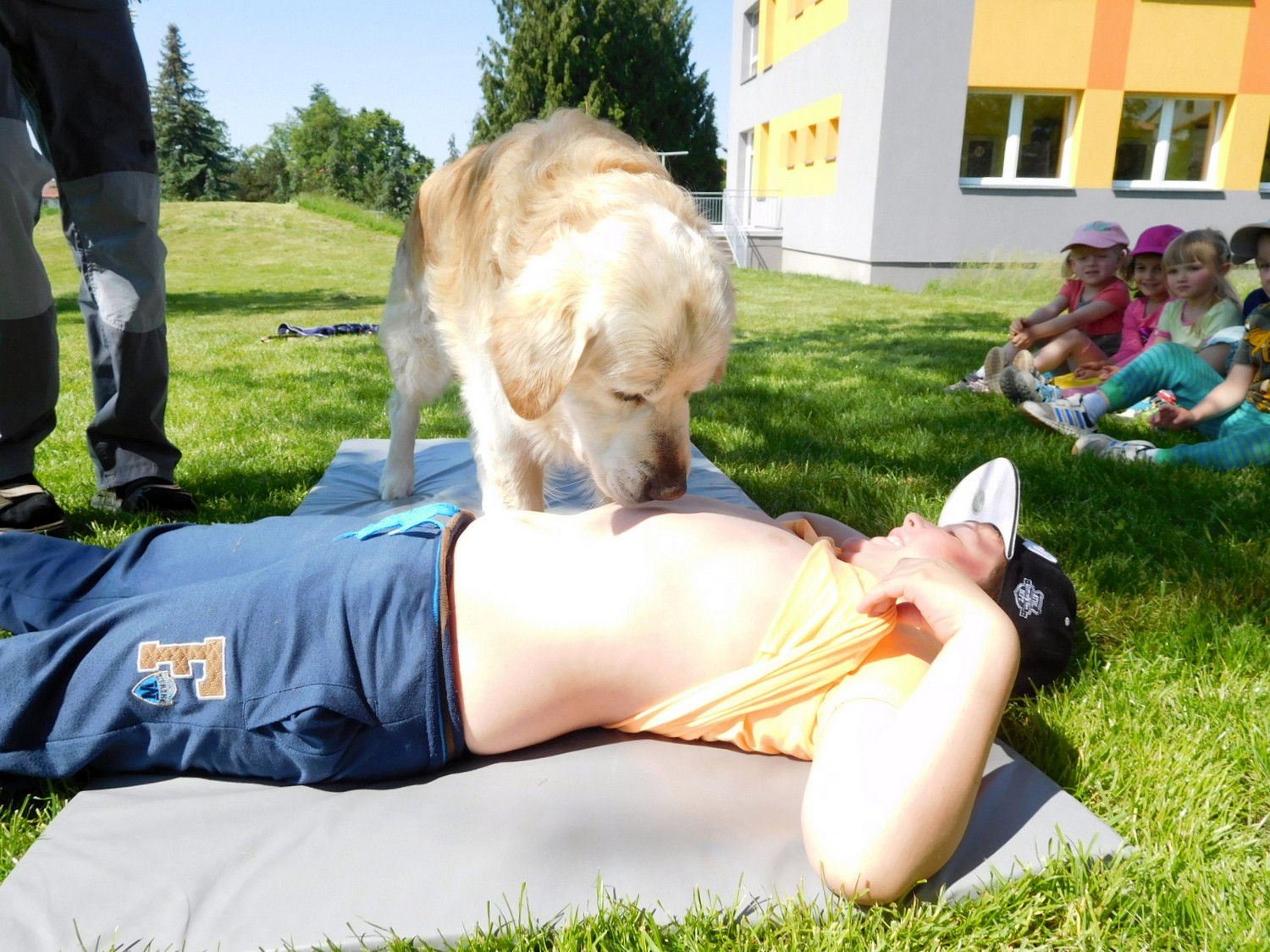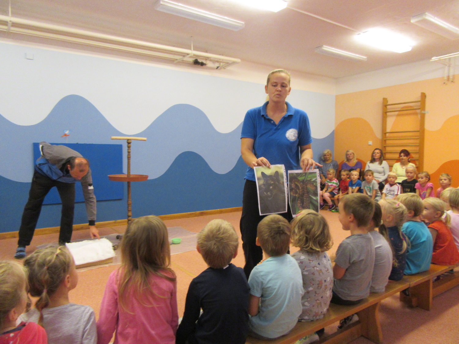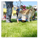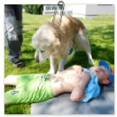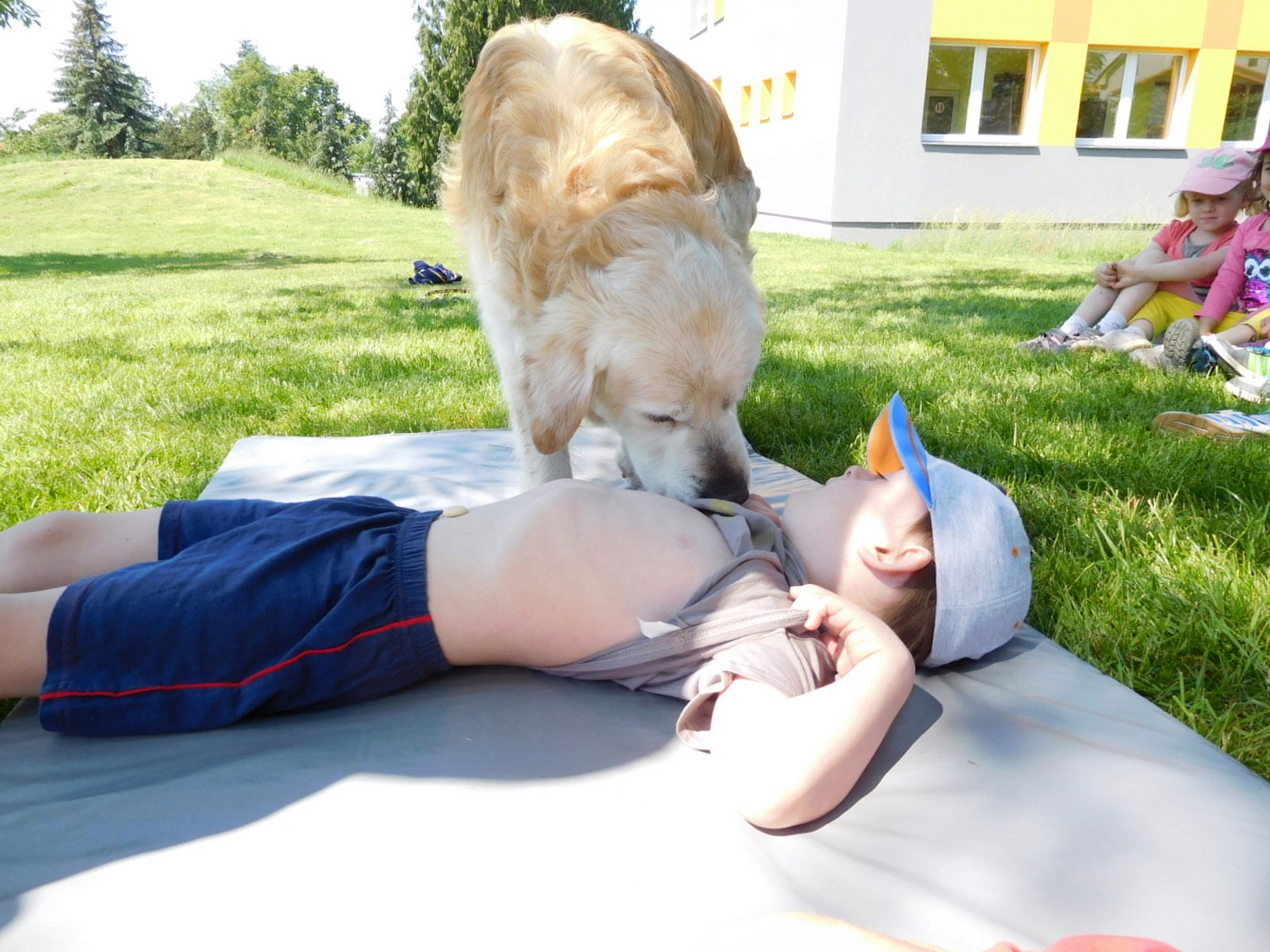 3. 6. 2019 třídu Kopretin navštívil pan Fabián se svým psem Joramem a předvedli nám ukázky z Canisterapie. Spolu s námi se ukázky zúčastnila i třída Zvonků.