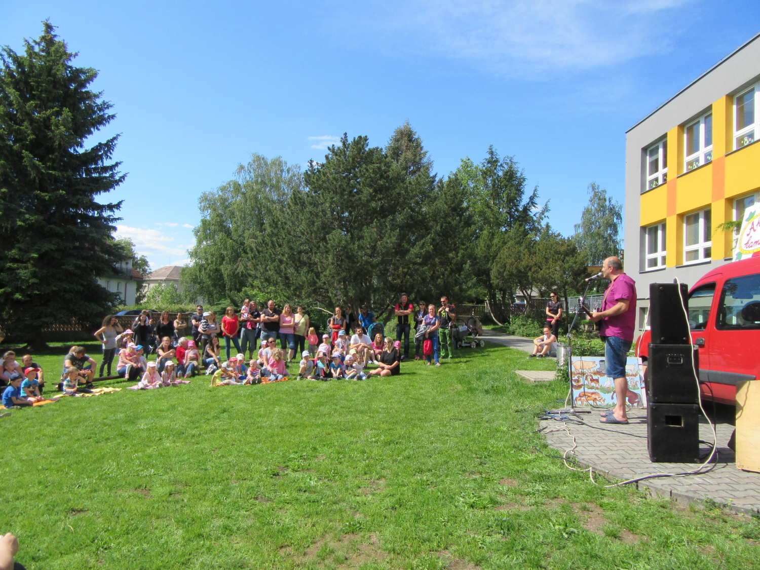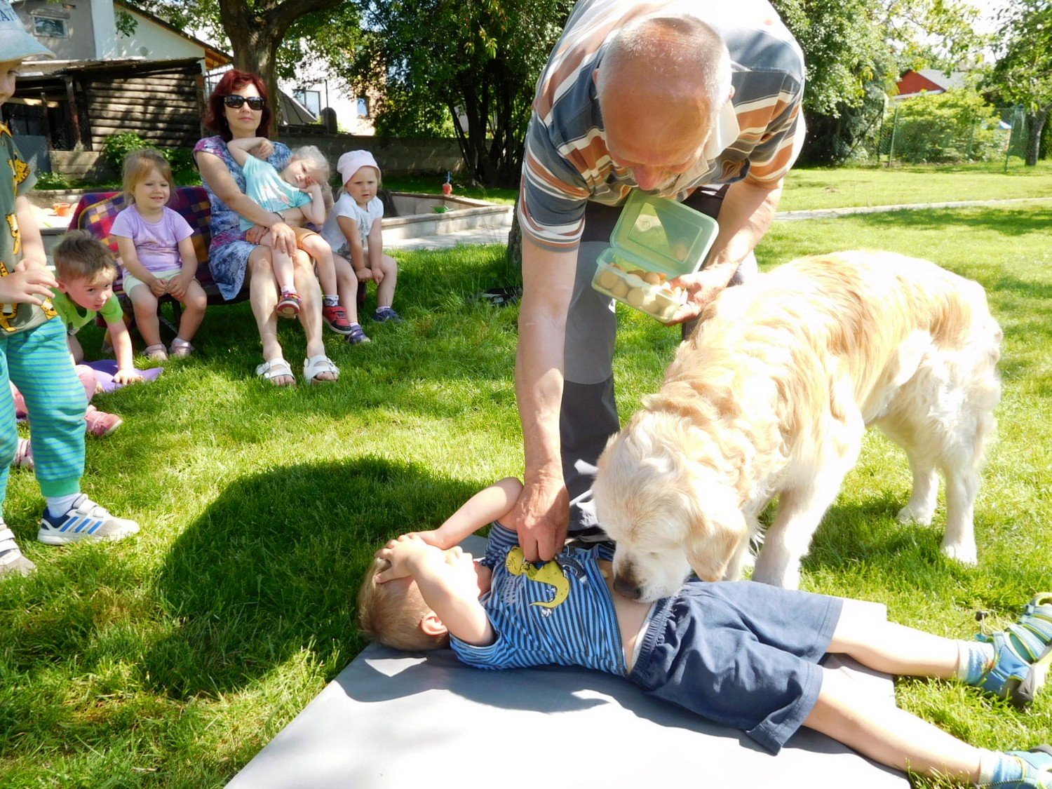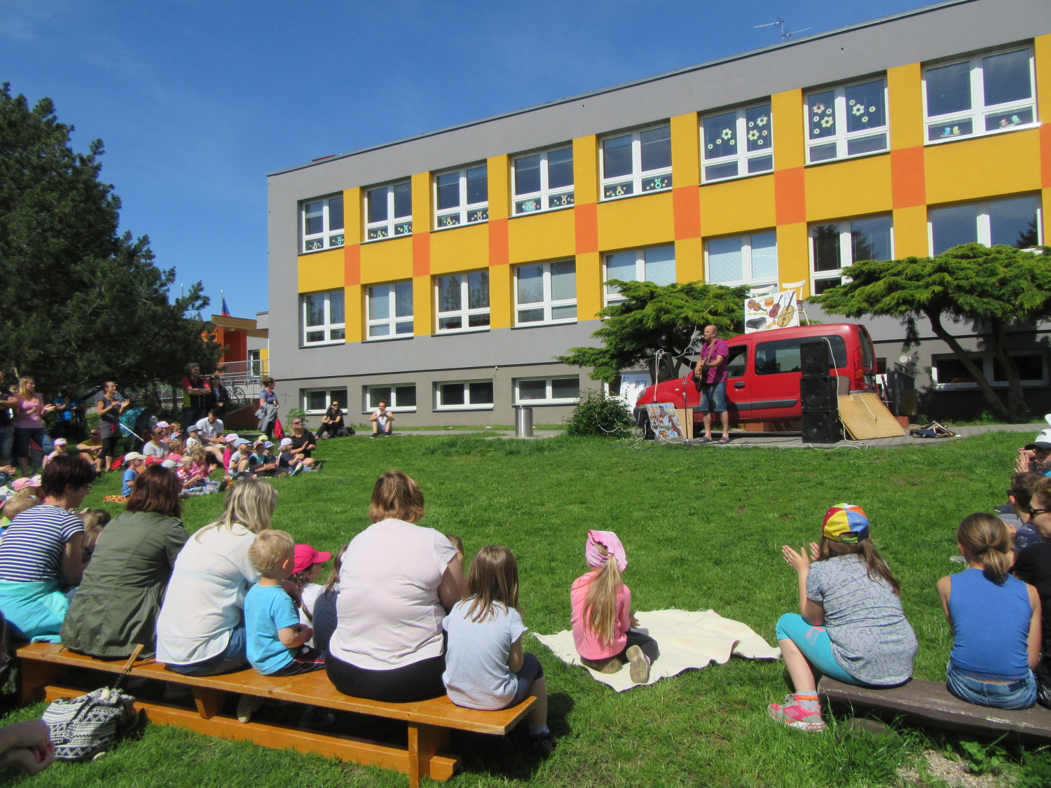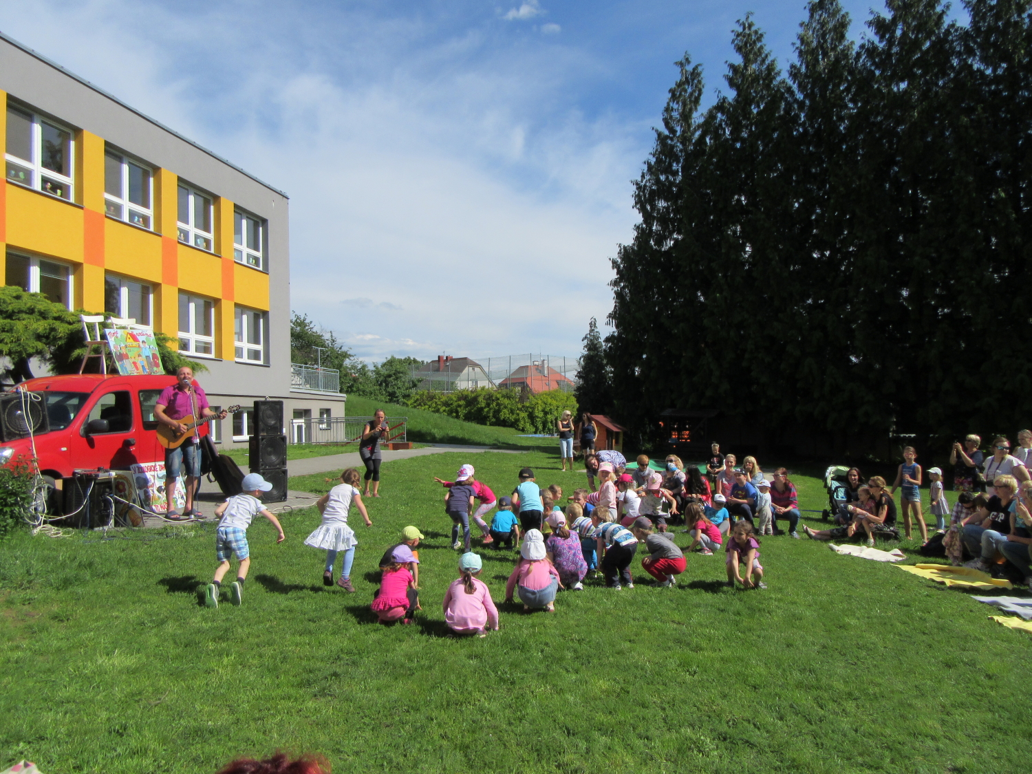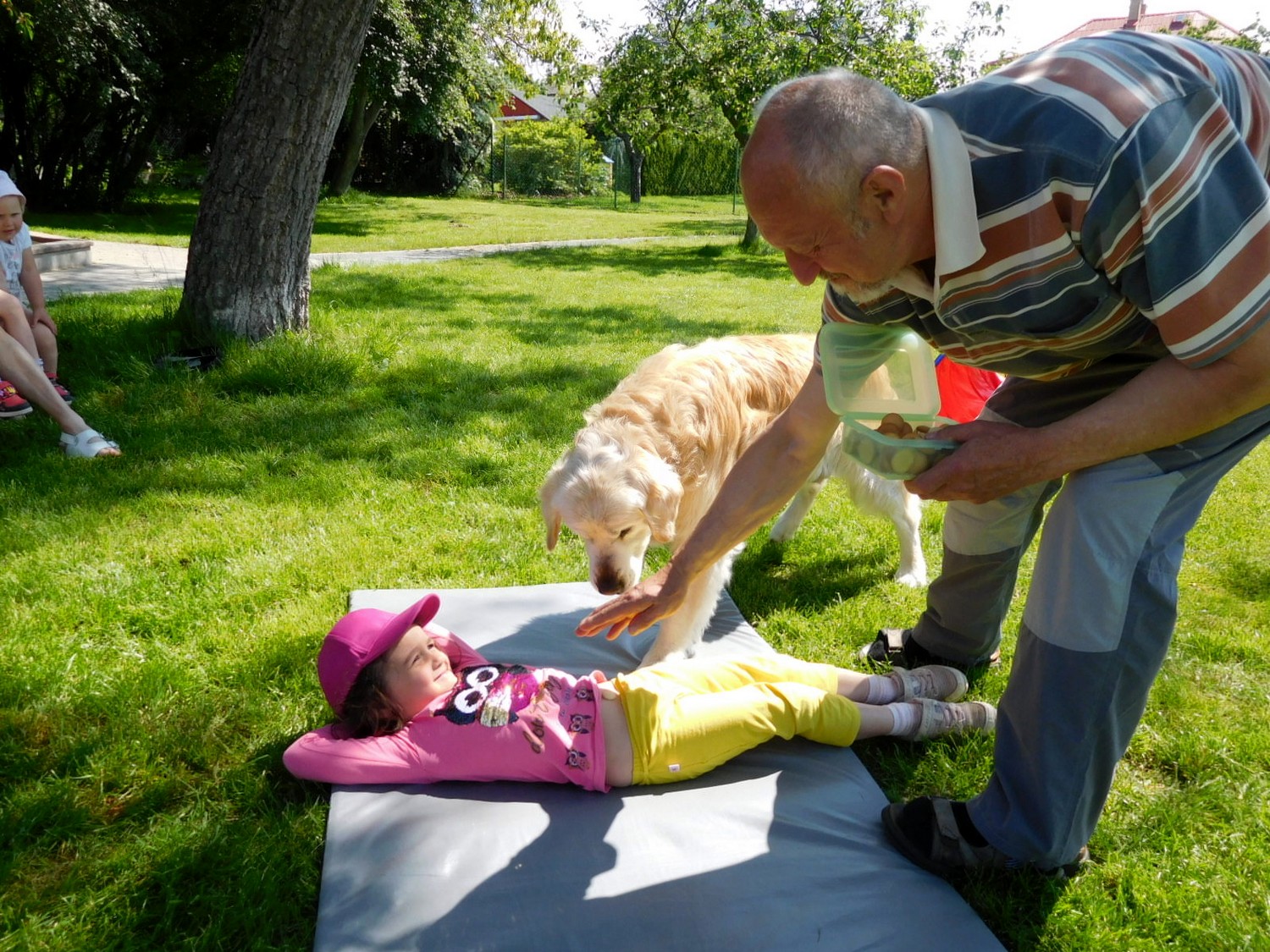 3. 6. 2019 třídu Kopretin navštívil pan Fabián se svým psem Joramem a předvedli nám ukázky z Canisterapie. Spolu s námi se ukázky zúčastnila i třída Zvonků.