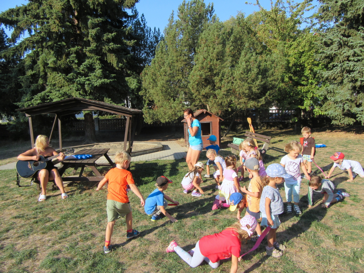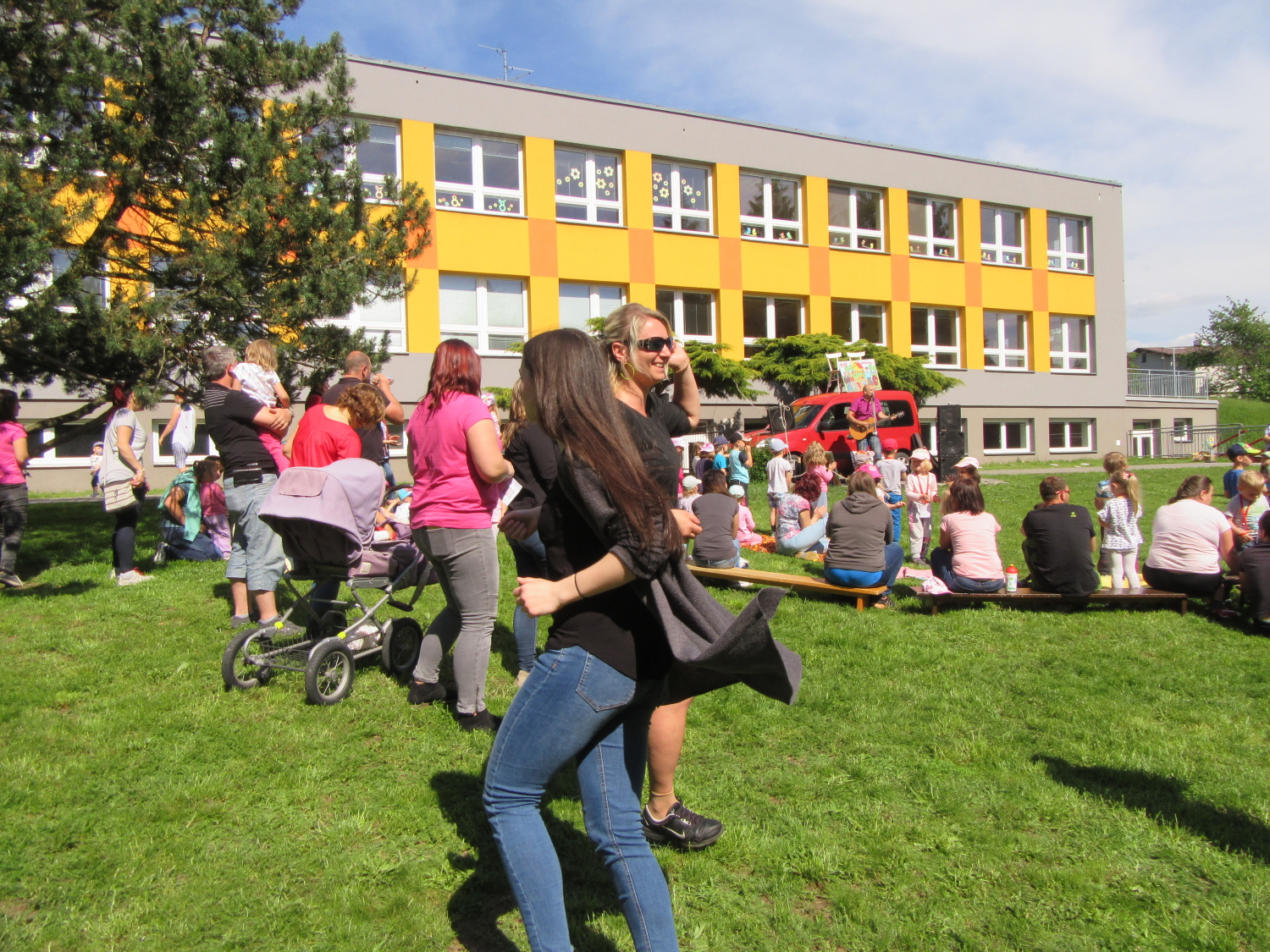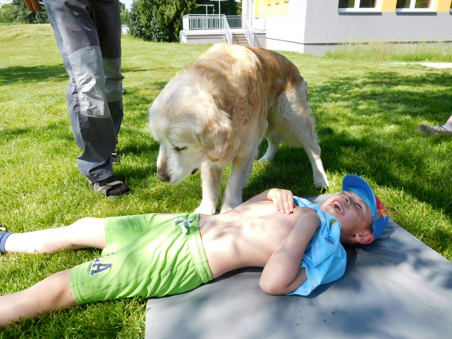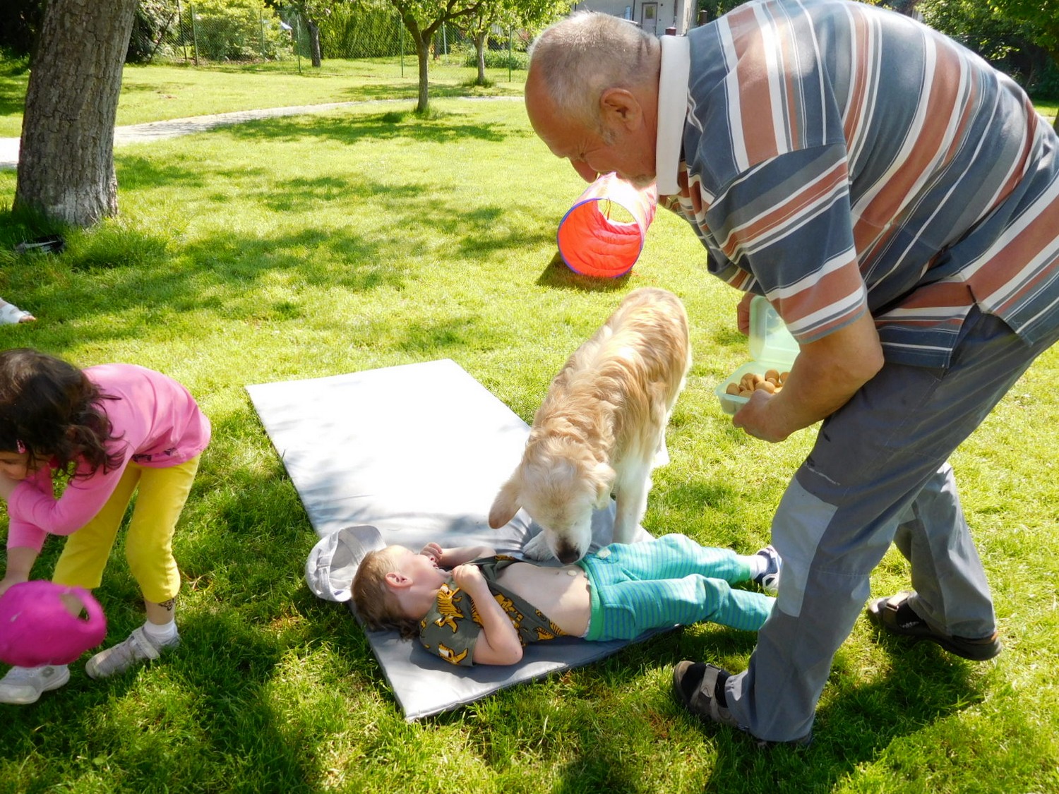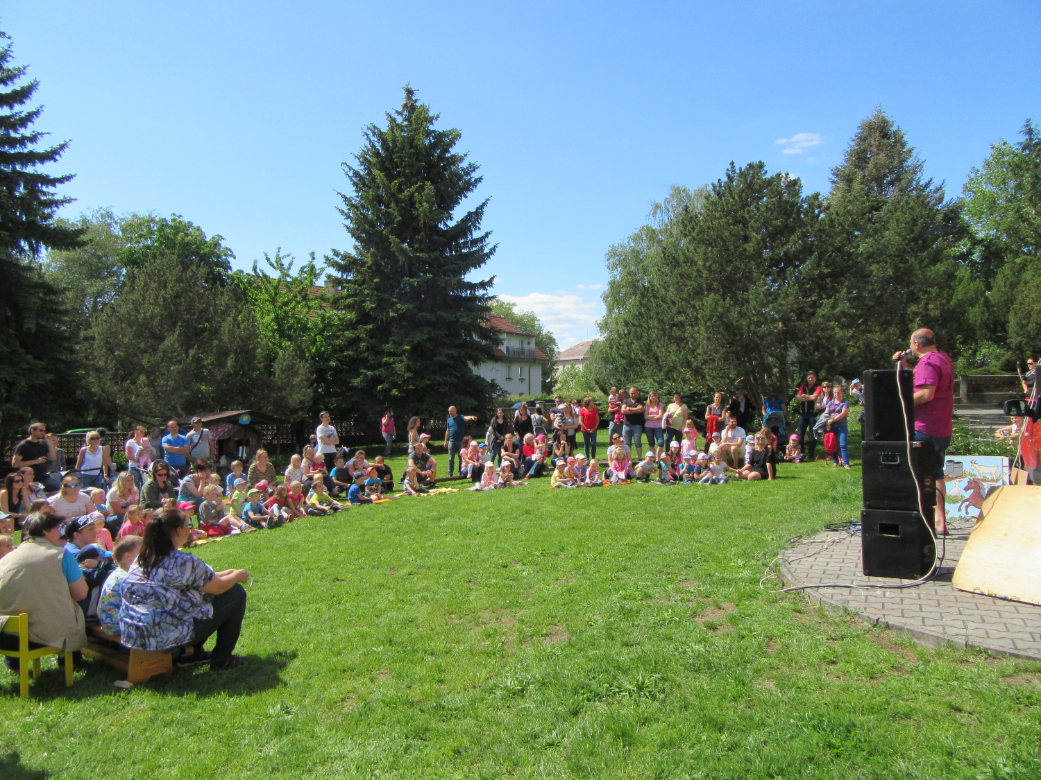 3. 6. 2019 třídu Kopretin navštívil pan Fabián se svým psem Joramem a předvedli nám ukázky z Canisterapie. Spolu s námi se ukázky zúčastnila i třída Zvonků.